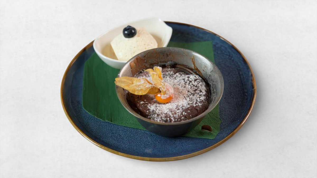 Zartbitterschokolavakuchen mit flüssigem Kern und Vanilleeis