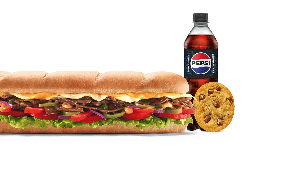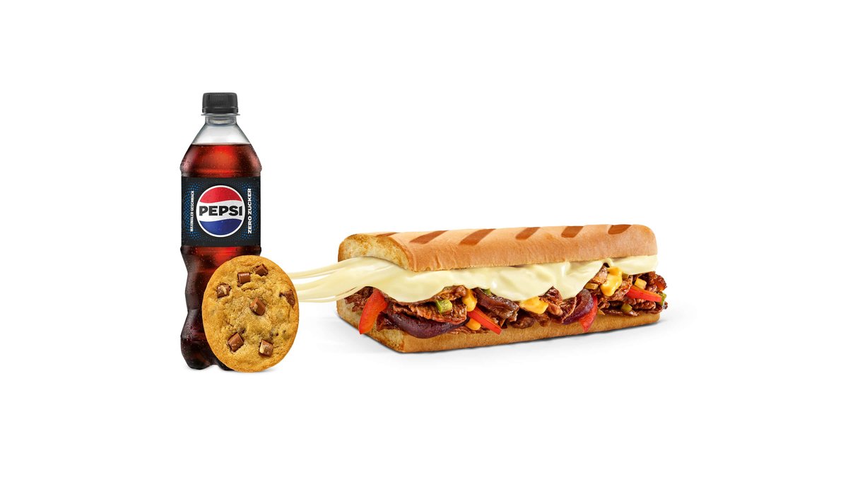 1 Philly Supreme SubMelt*, 1 drink, and 1 side (cookie, chips, or medium waffle fries) *Fixed topping formula: Philly beef, three portions of sliced cheese, bell peppers, red onions, and Chipotle Southwest sauce.