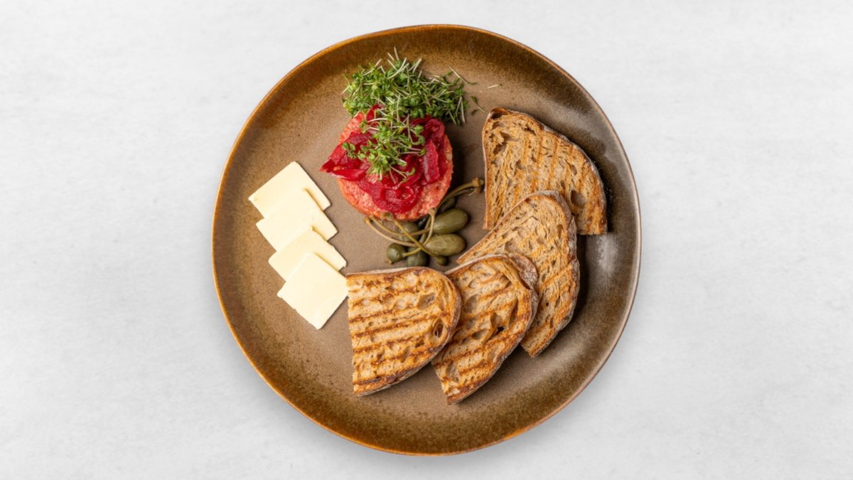 Gehacktes Rindfleisch, salzige Kapern, frische Zwiebel, aromatische Shiso Kresse, homemade Sauerteig Toast