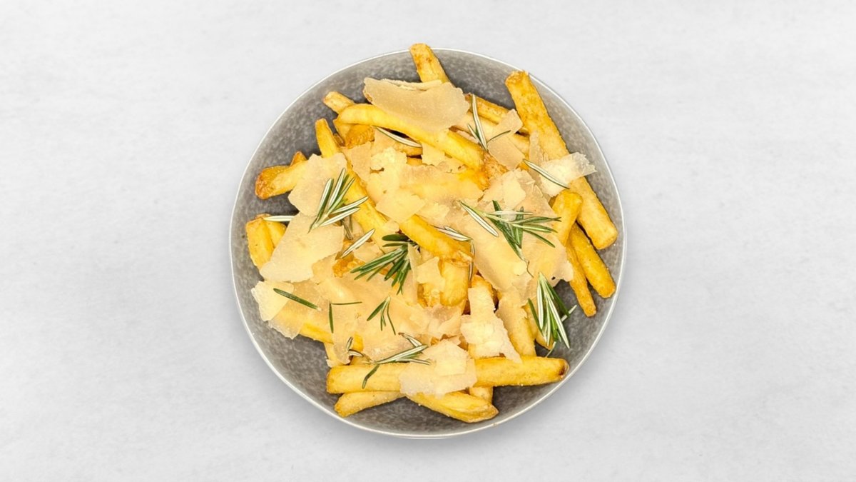 Knusprige Kartoffel, herber Rosmarin, frisches Meersalz, würziger Grana
