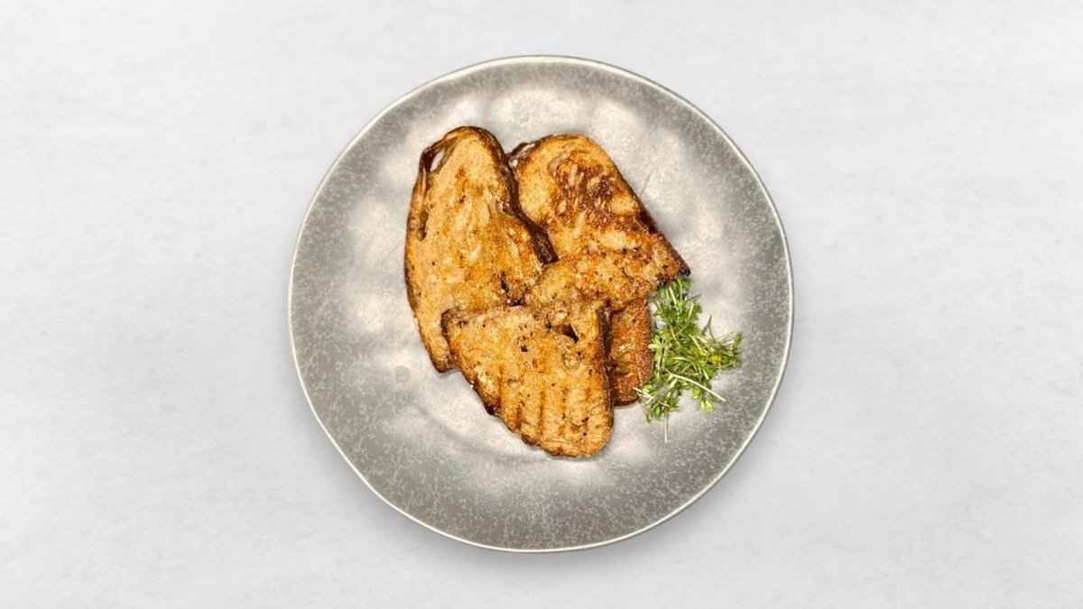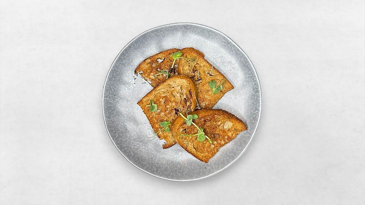 Salzige Kapern, cremige Tahini, frische Zwiebel, vegane Butter, homemade Sauerteig Toast
