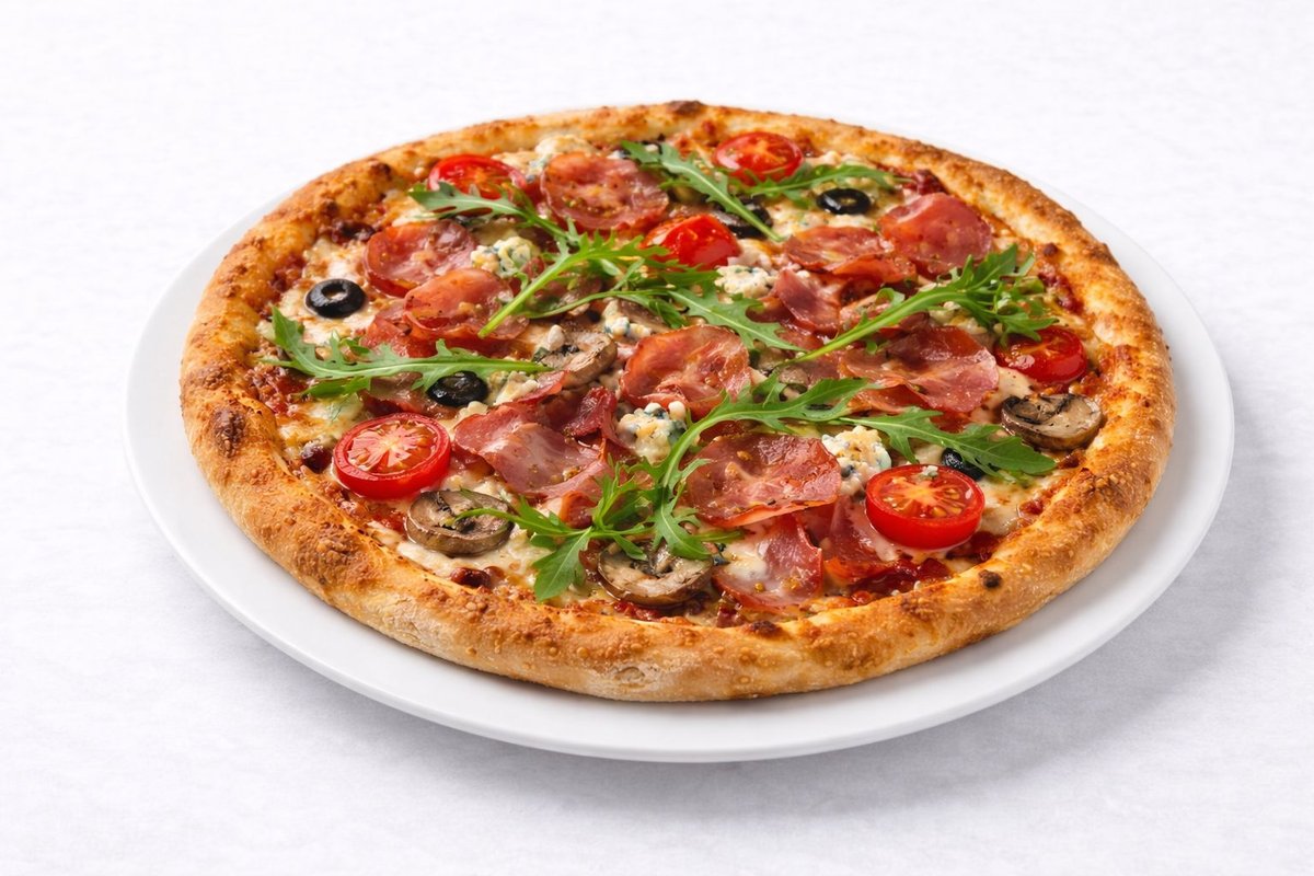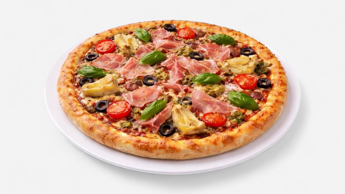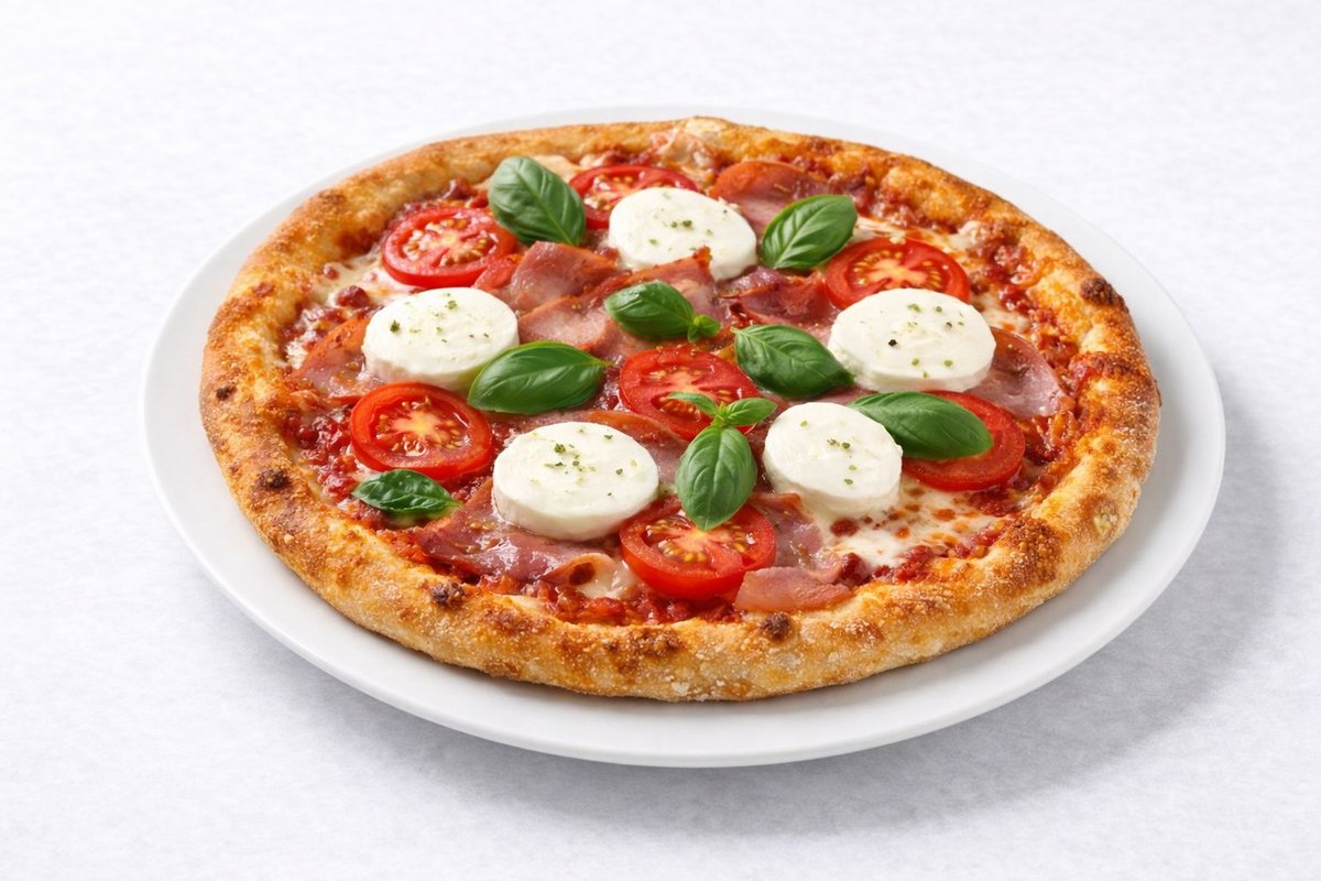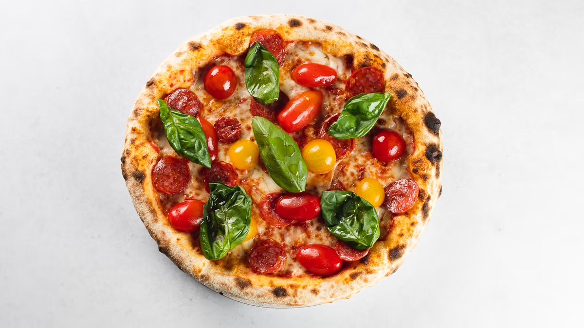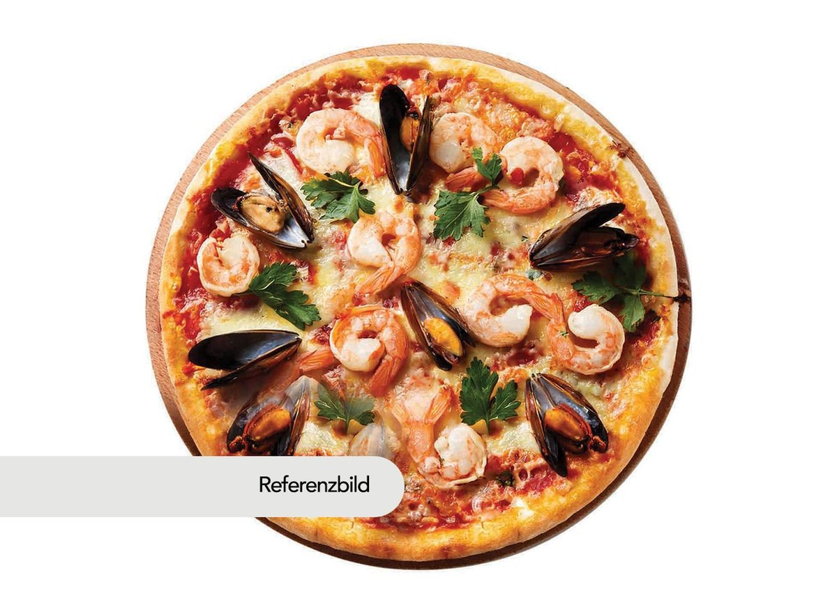 Alle Pizzen werden mit Tomaten und Käse belegt und in einer Größe deiner Wahl zubereitet