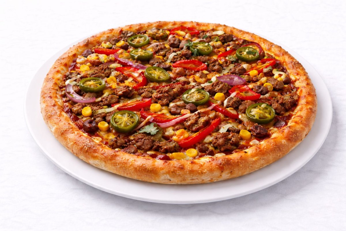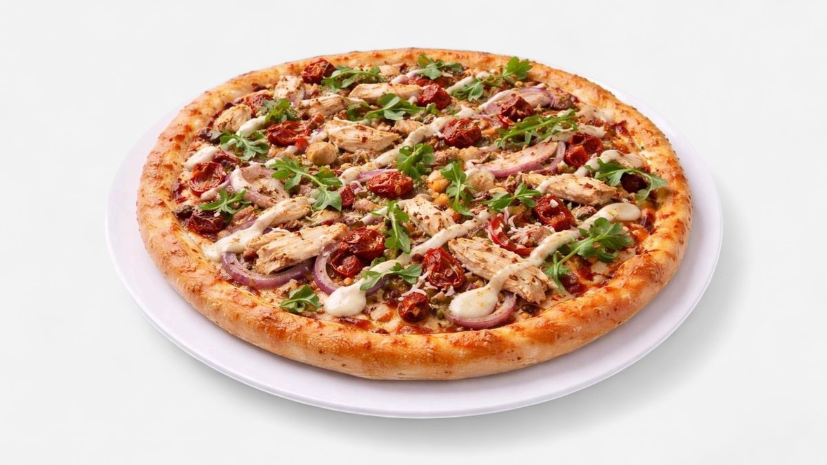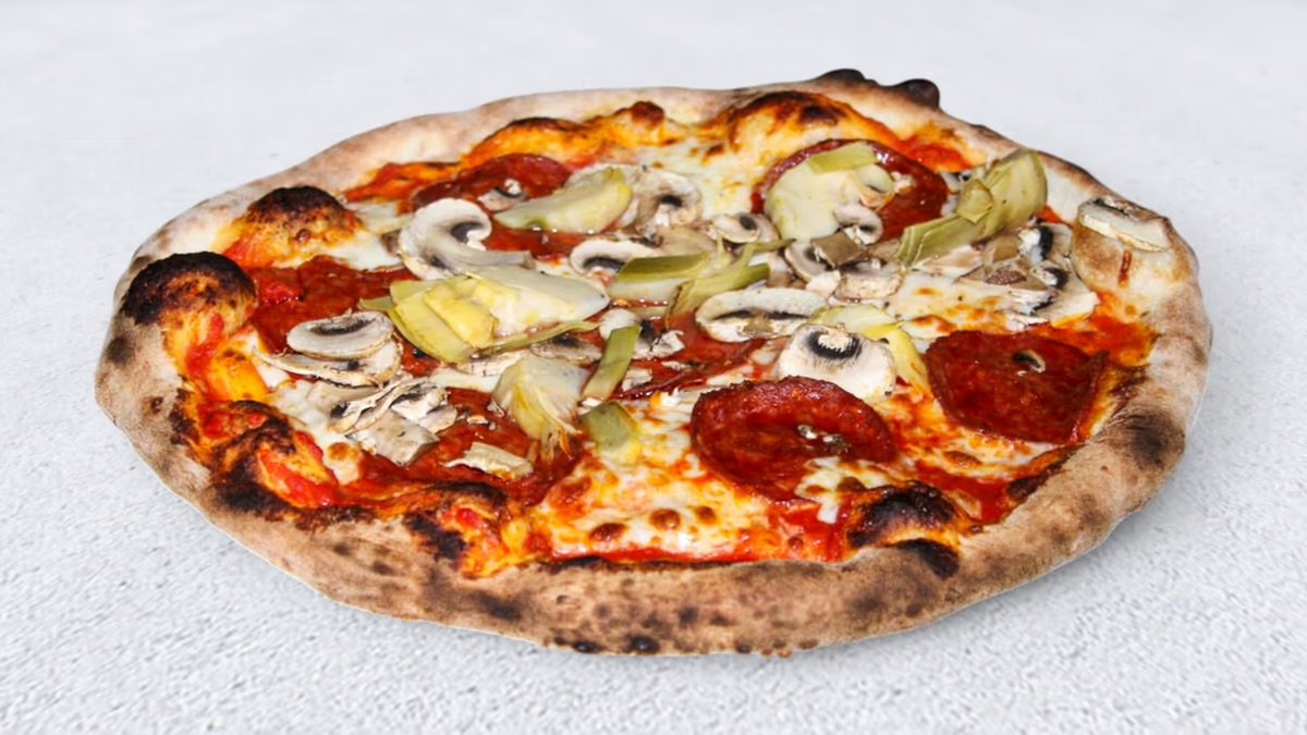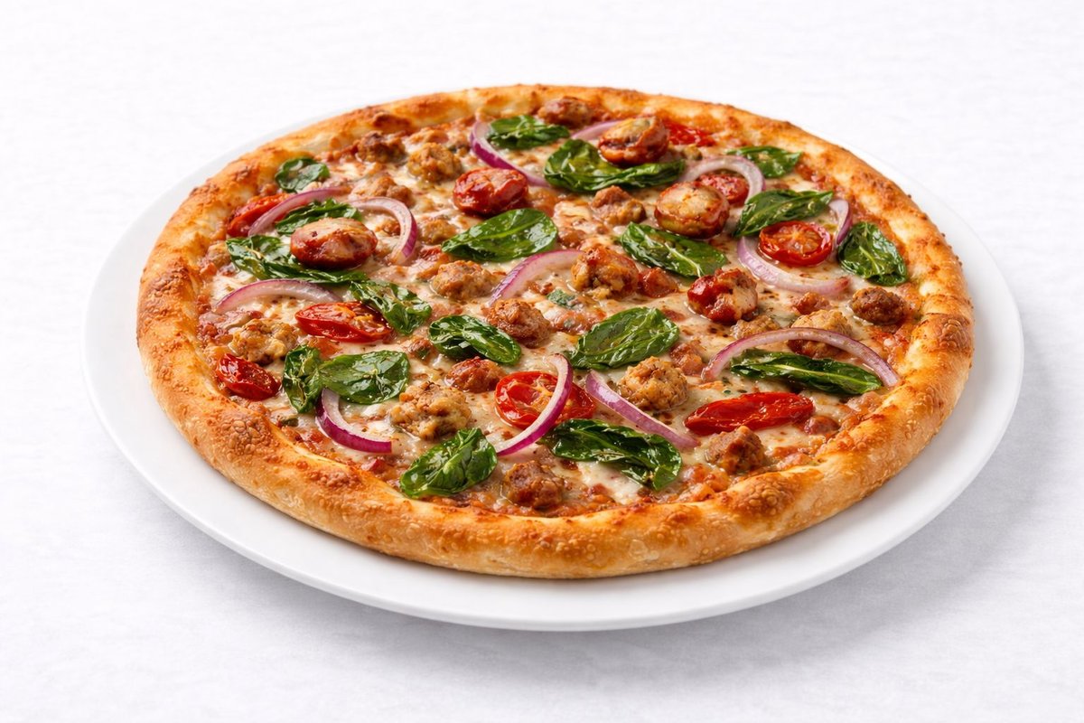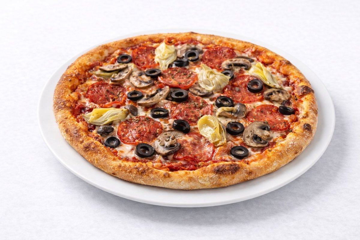 Alle Pizzen werden mit Tomaten und Käse belegt und in einer Größe deiner Wahl zubereitet