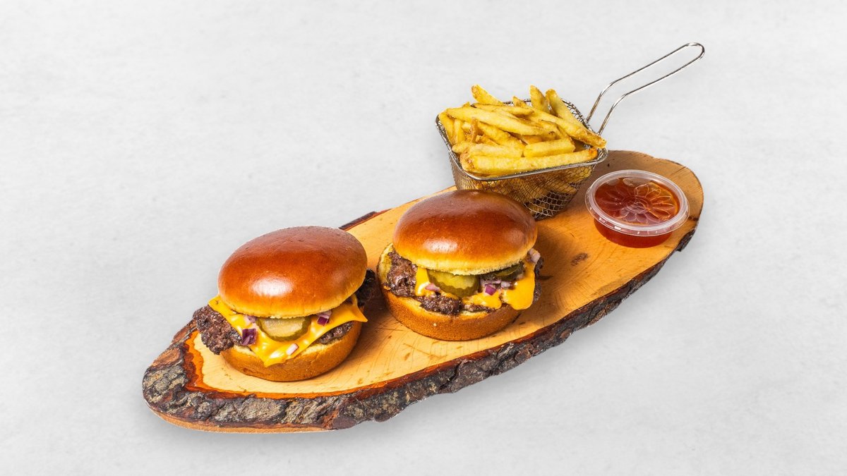 2x Eazy Chezzy Smash Burger klein 1x Crispy Fries klein 1x hausgemachte Soße