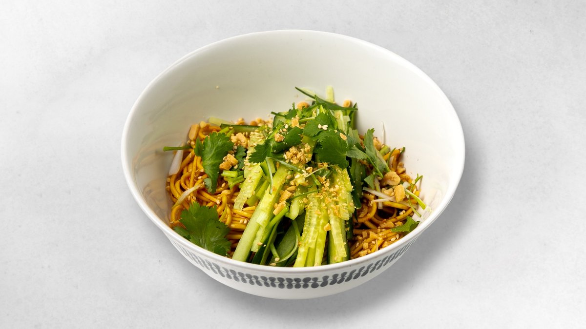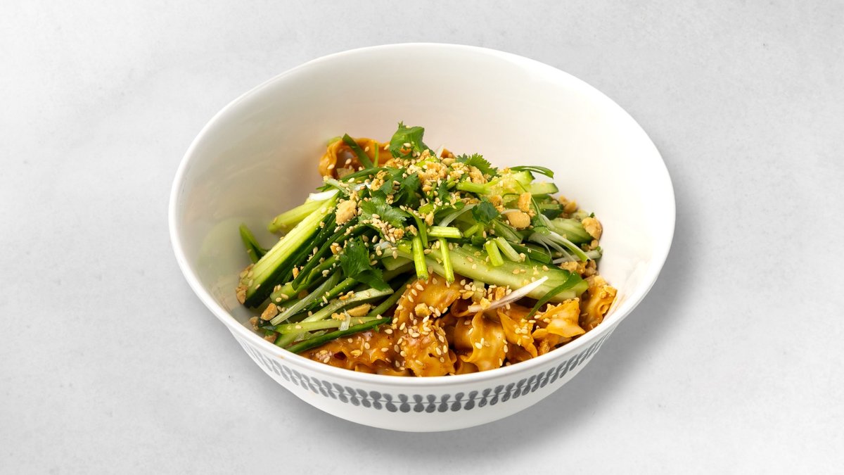 Noodles, cucumber, coriander, spring onion, chili Sichuan pepper oil