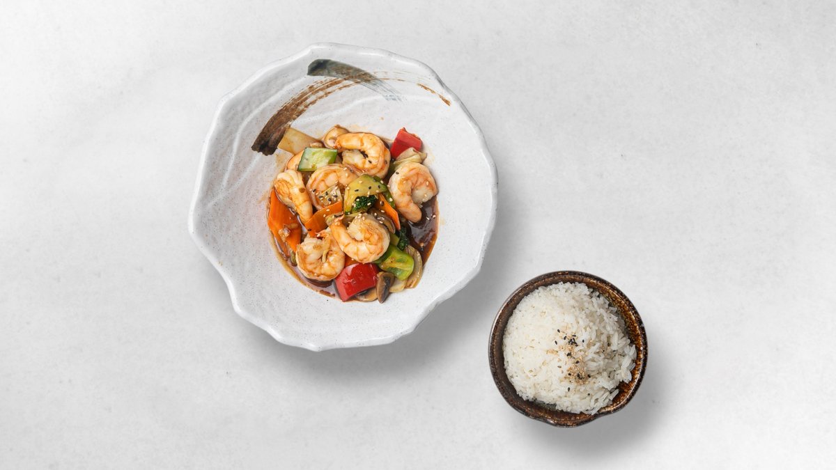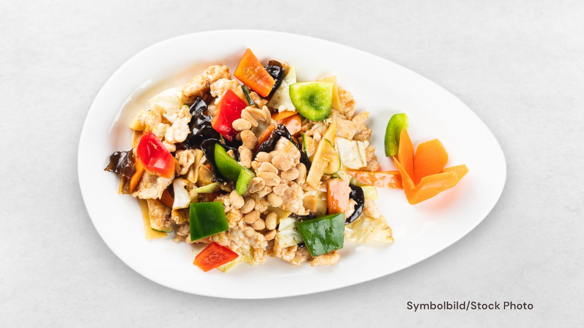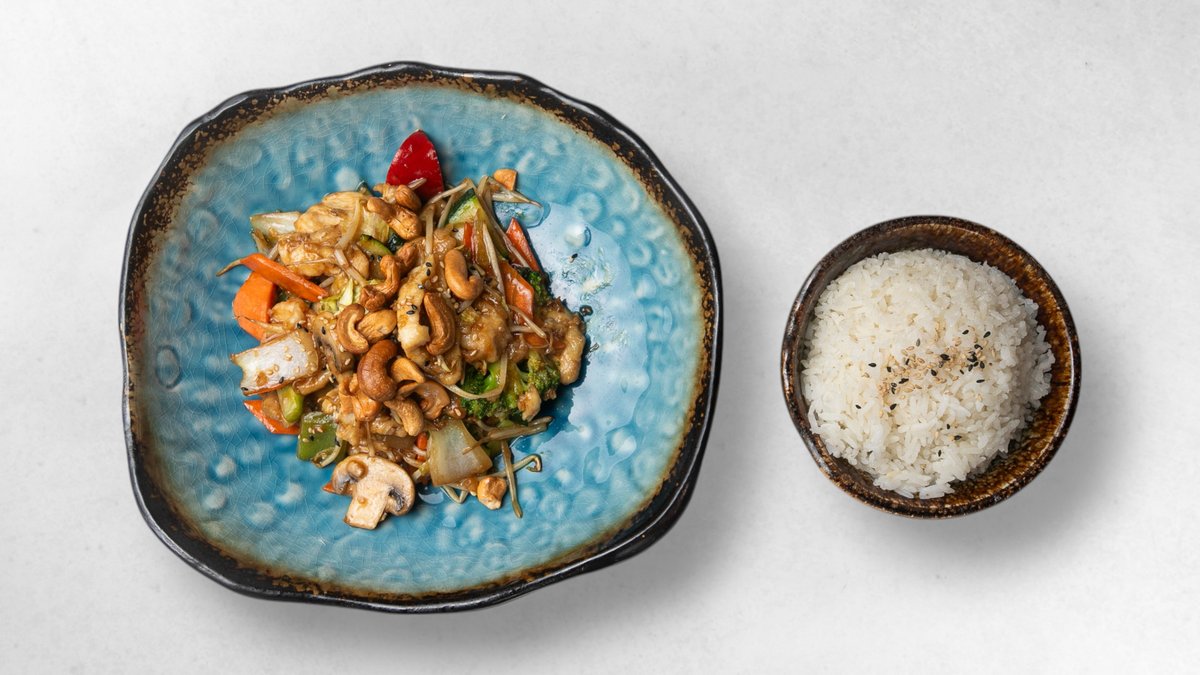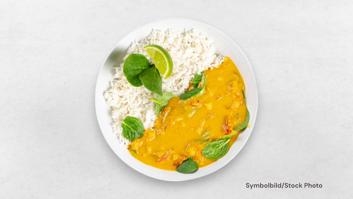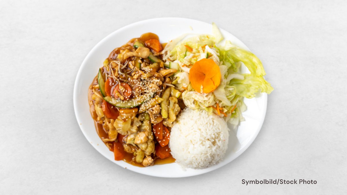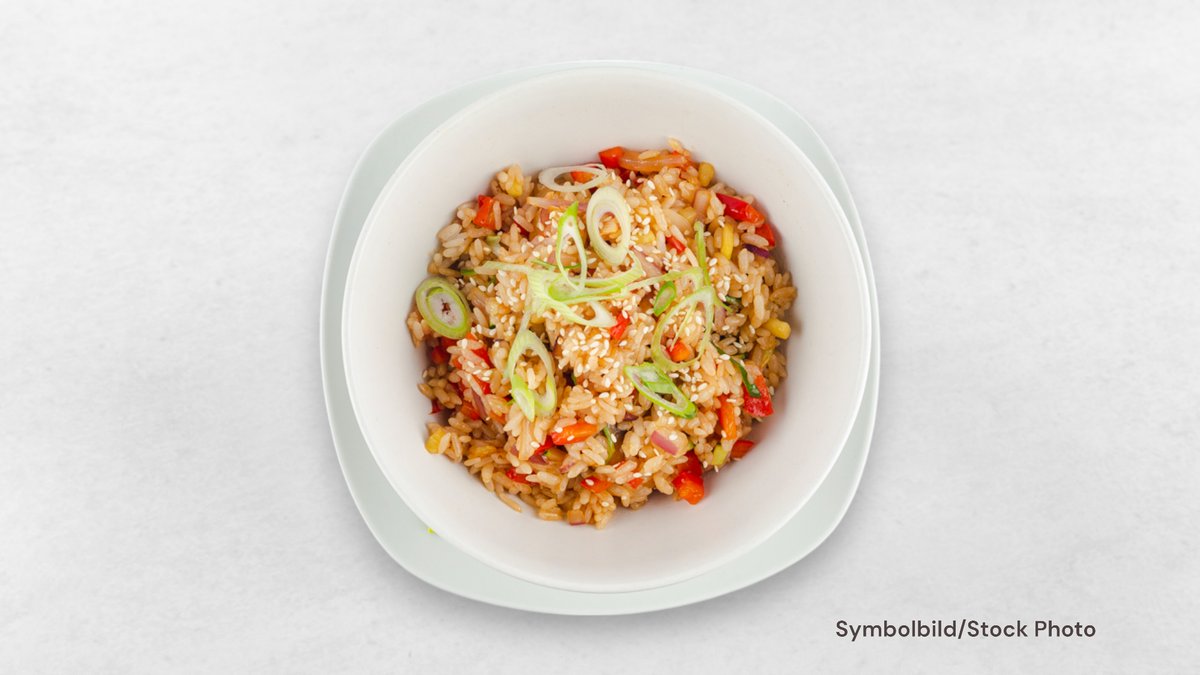 Asiatisches Gericht, zarter Reis, knackige Gemüse
