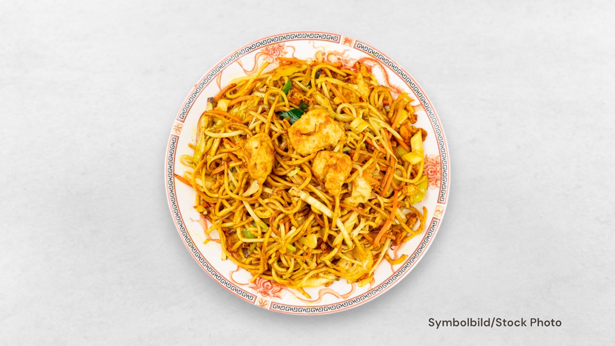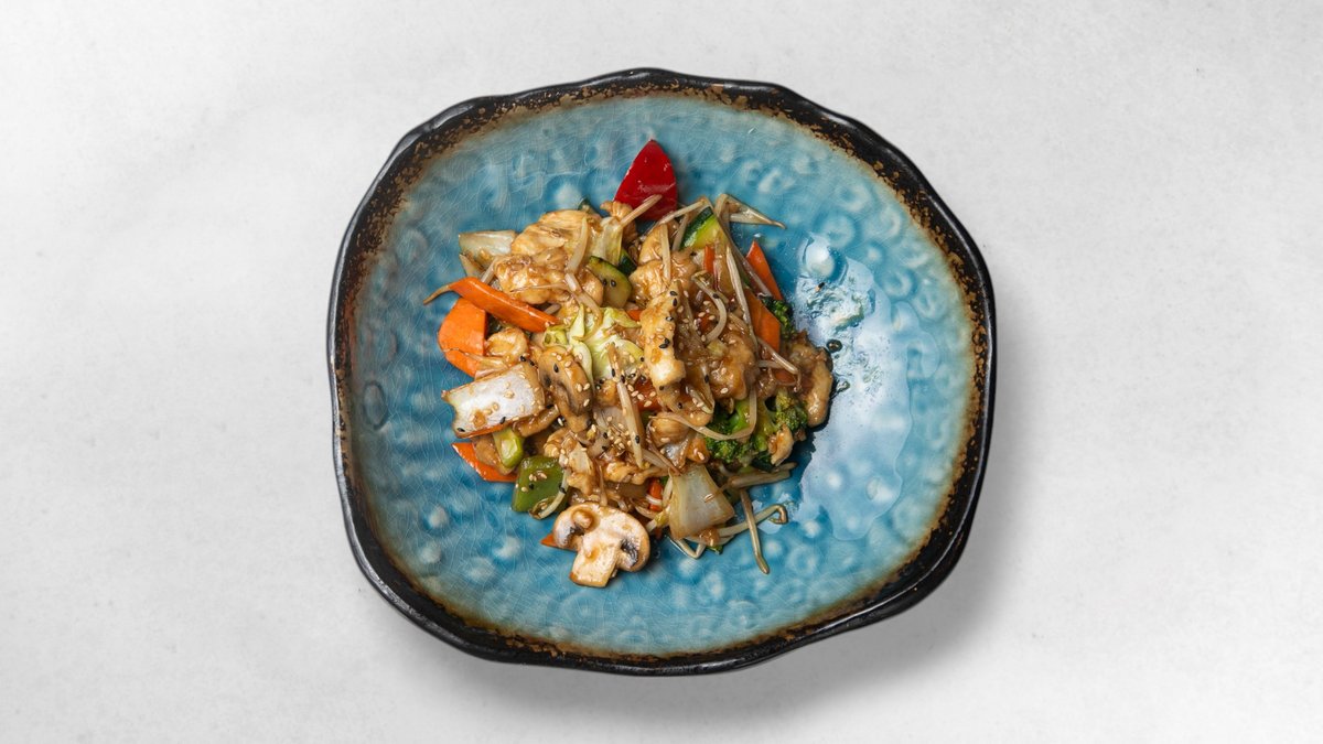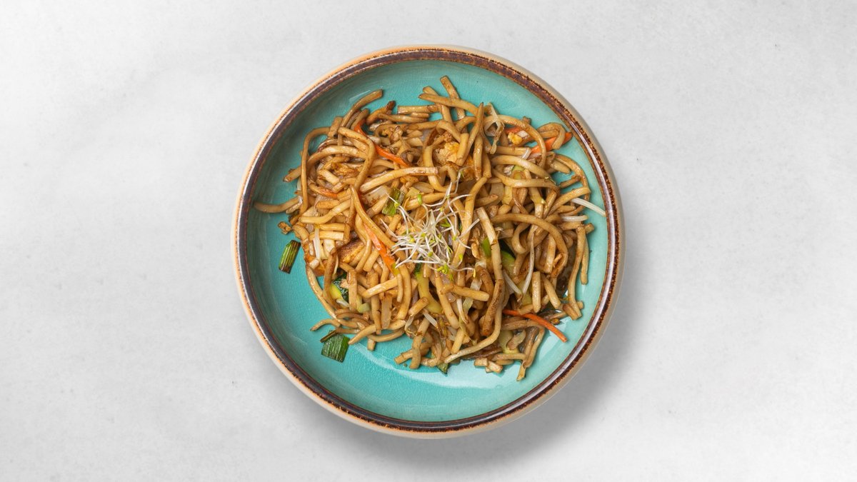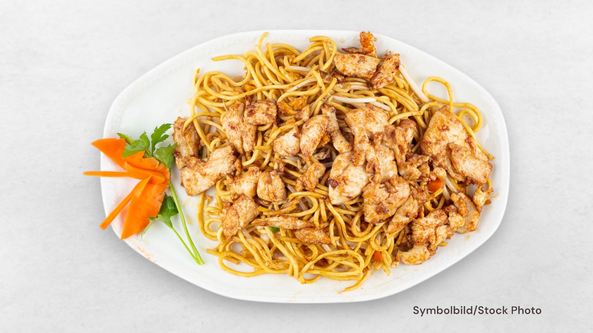 Gebratene Nudeln, Hühnerfleisch, Gemüse