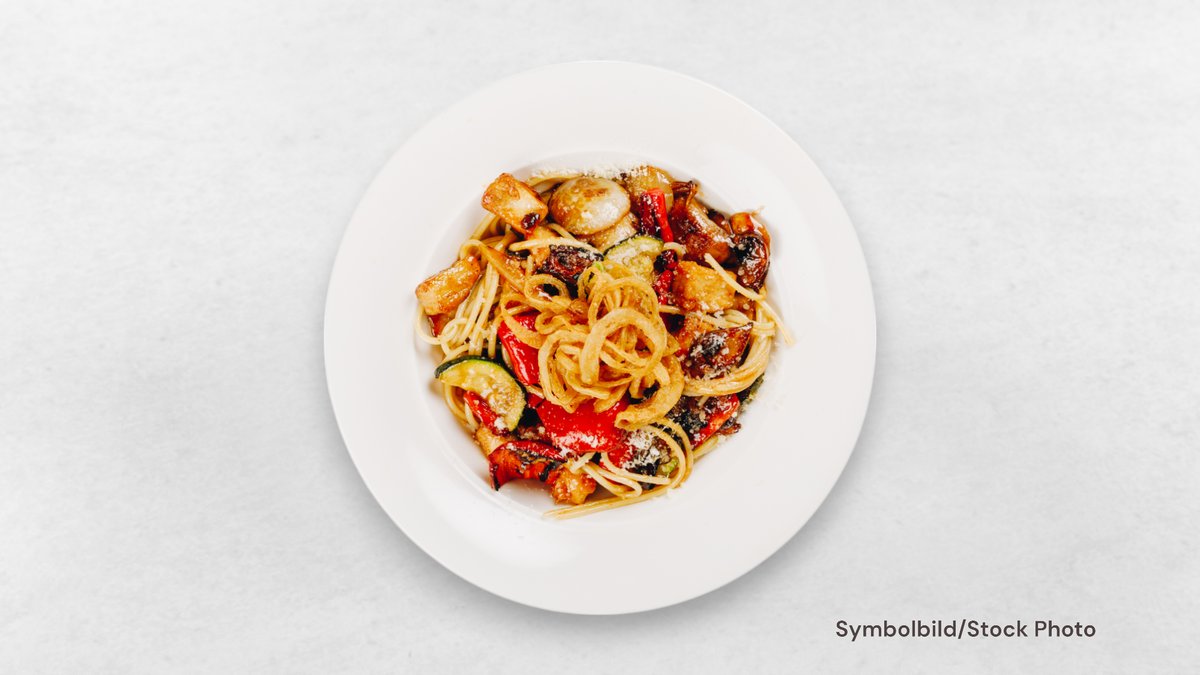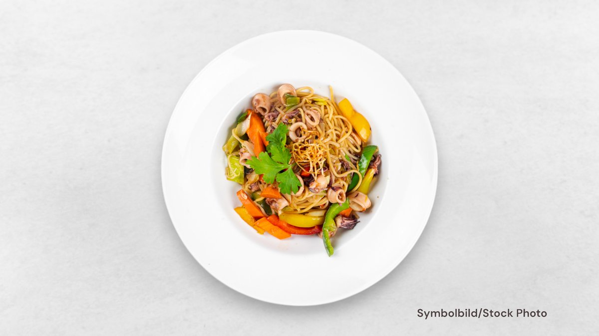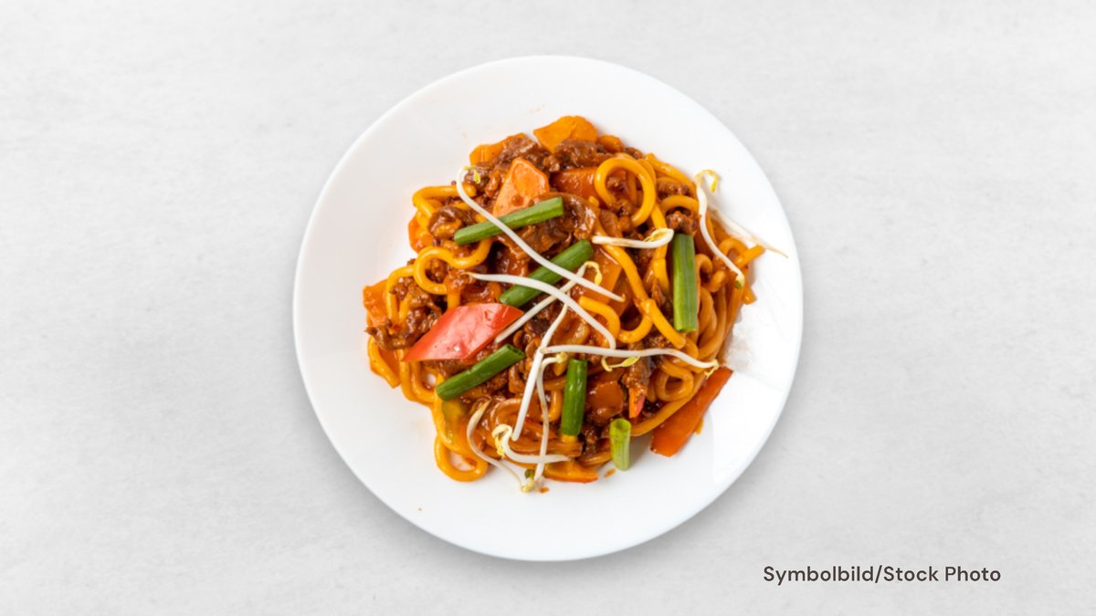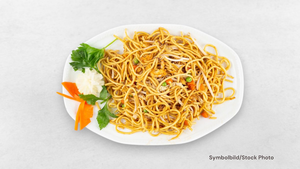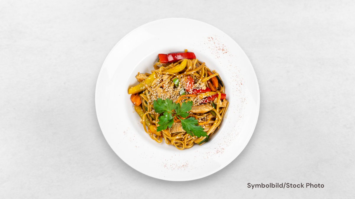 Gebratene Nudeln, Hühnerfleisch, Gemüse