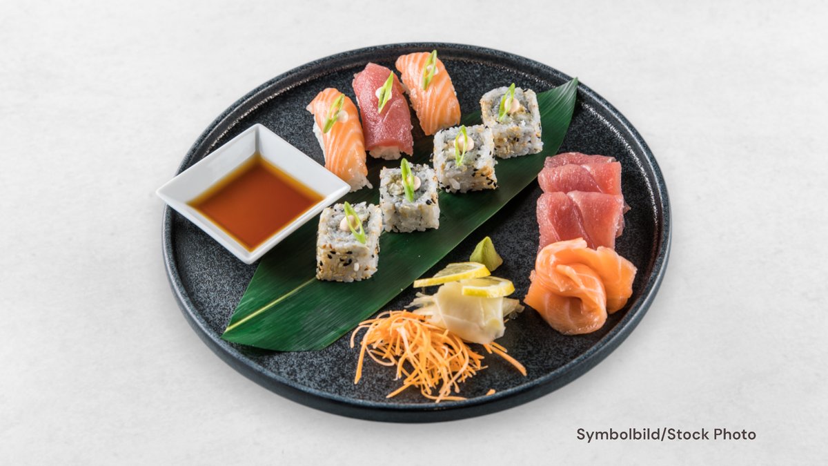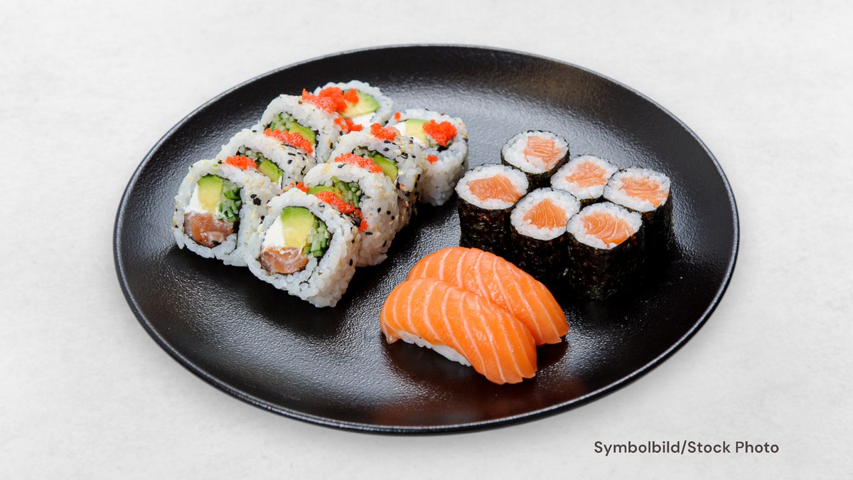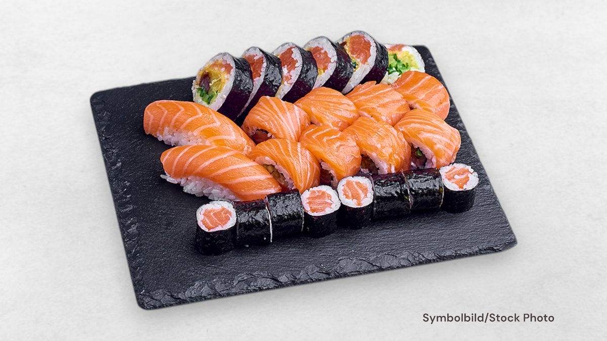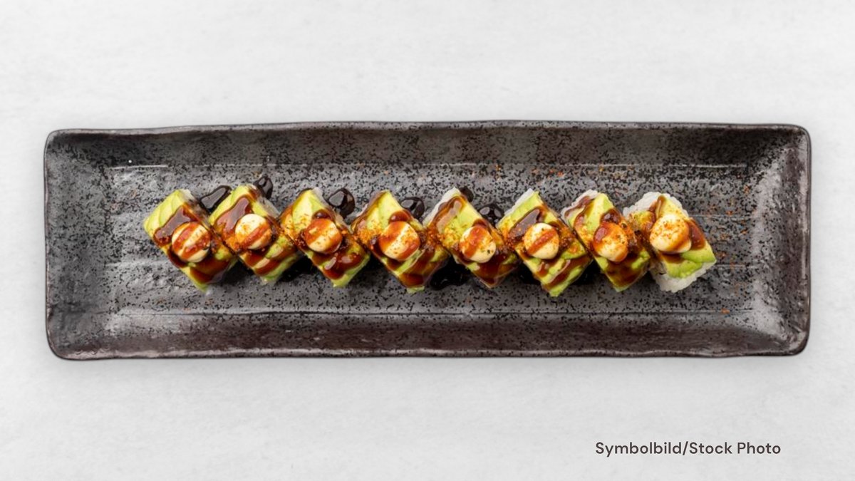 Gegrillter Lachs, Soße, Sushi, Maki, Obst