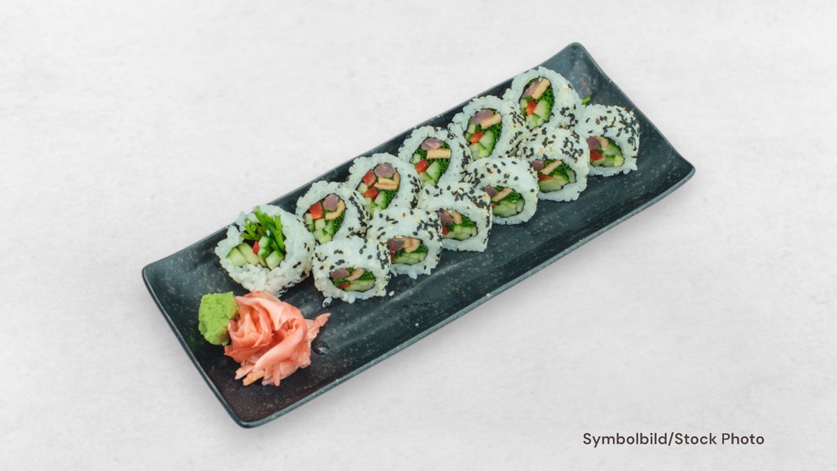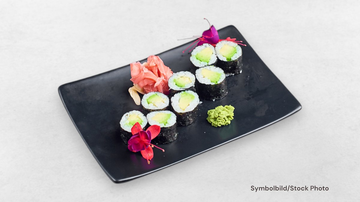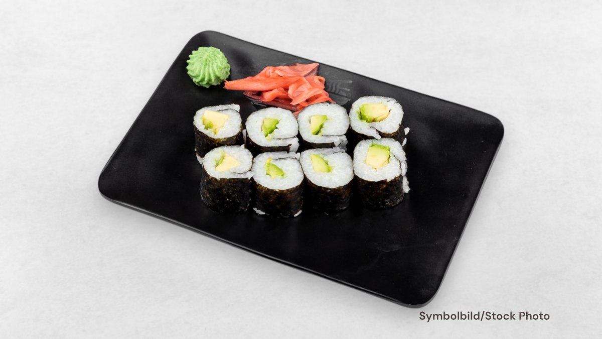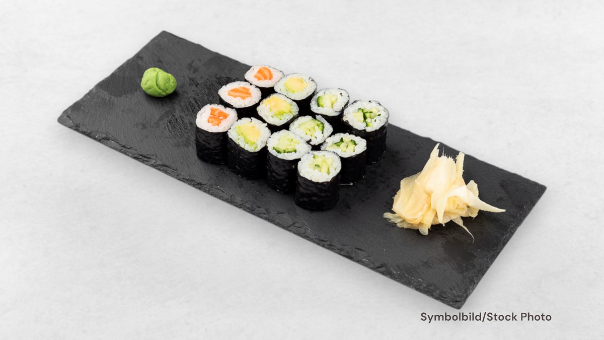 Gegrillter Lachs, Soße, Sushi, Maki, Obst