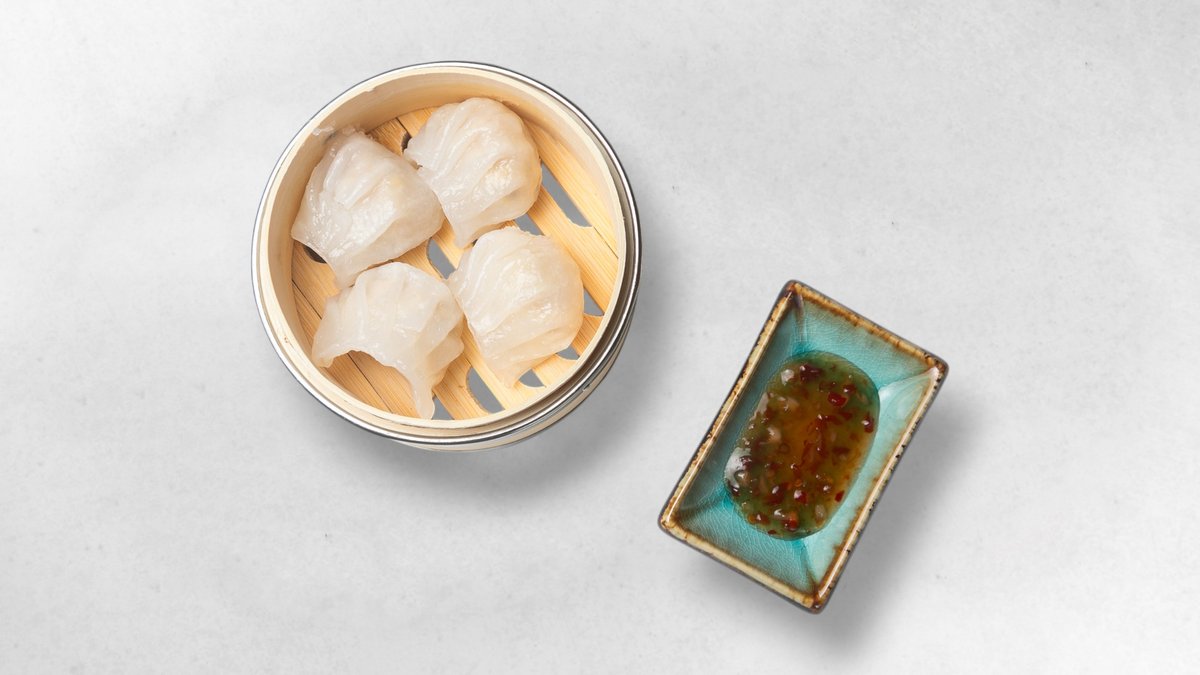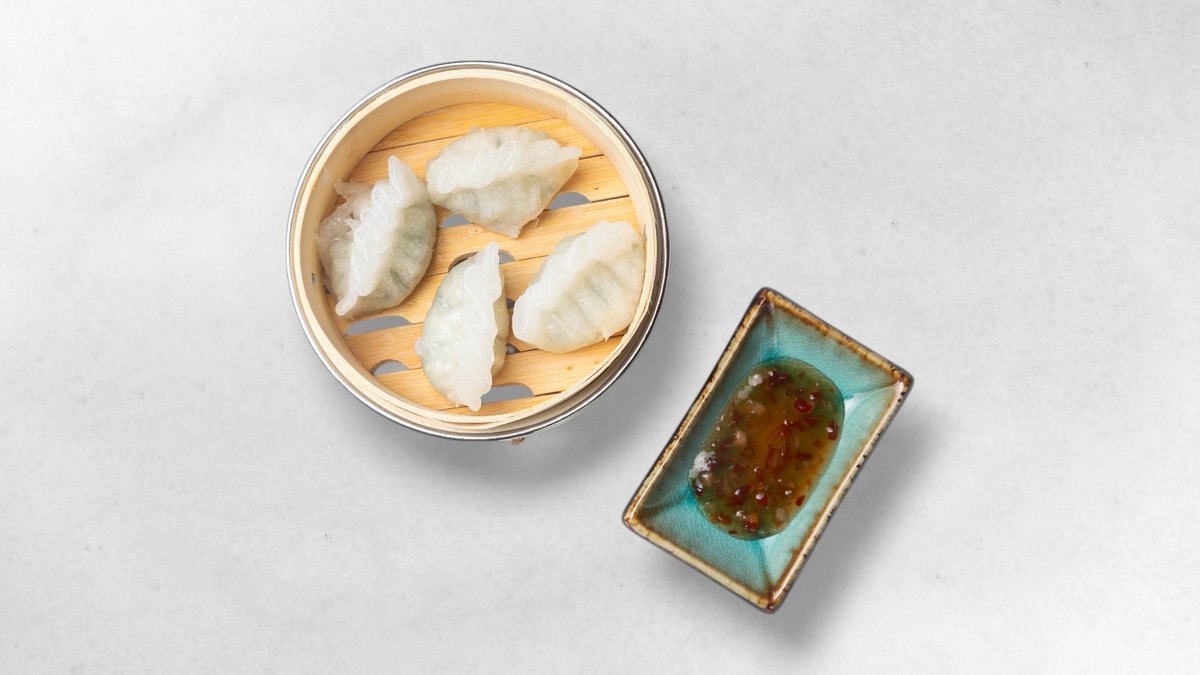 5 Stück, gedämpf Teigtaschen, Röhrenlauch-Pilz, Eiern, Garnelen