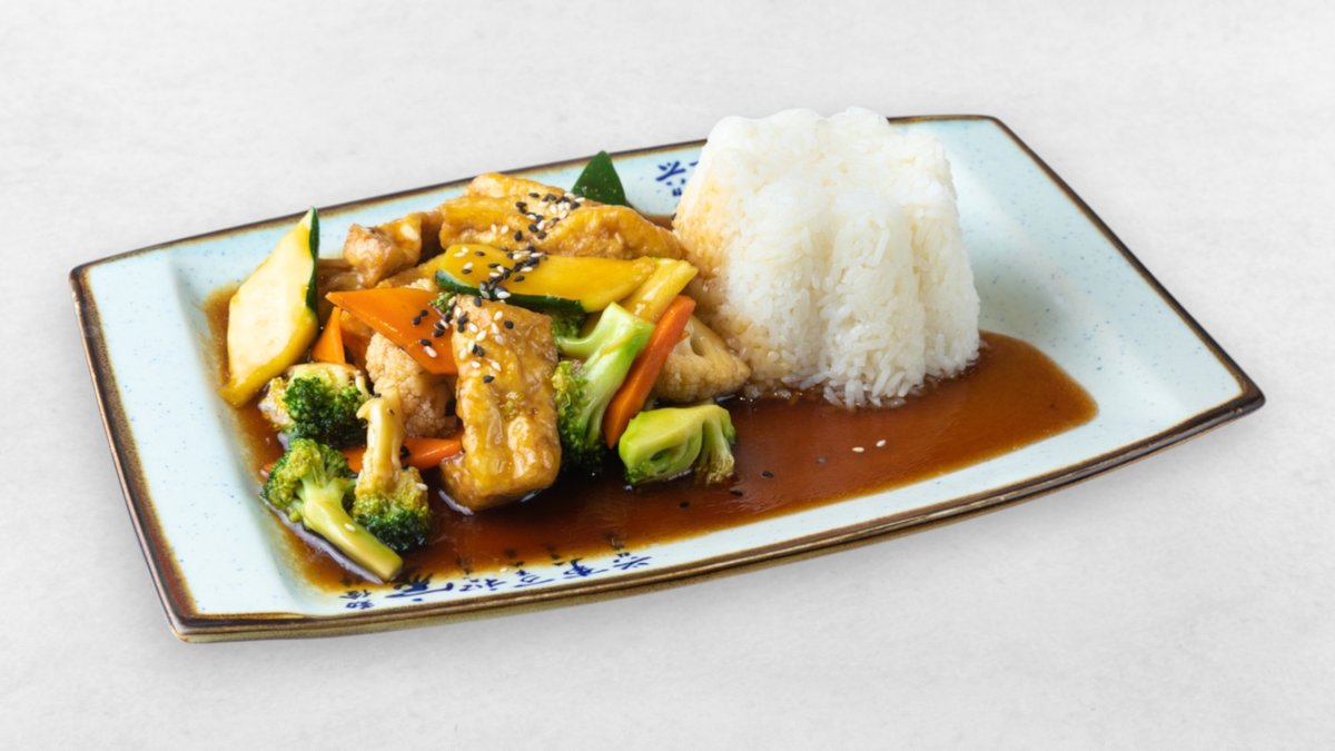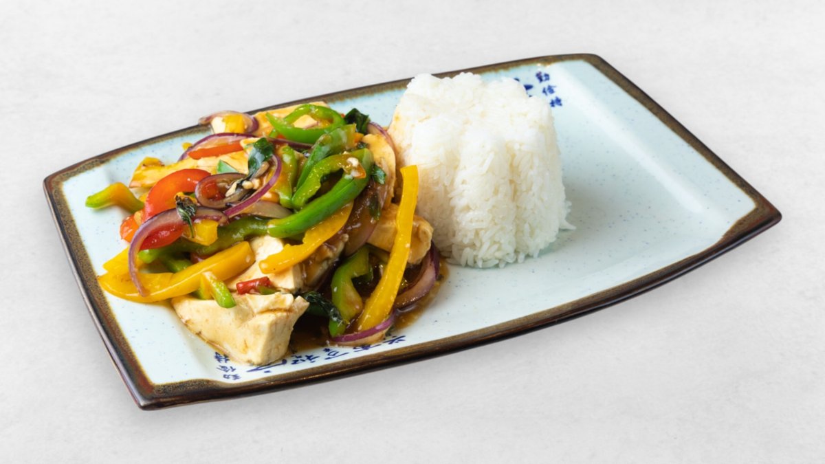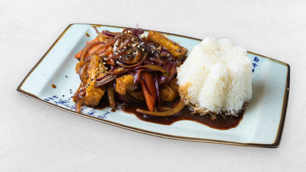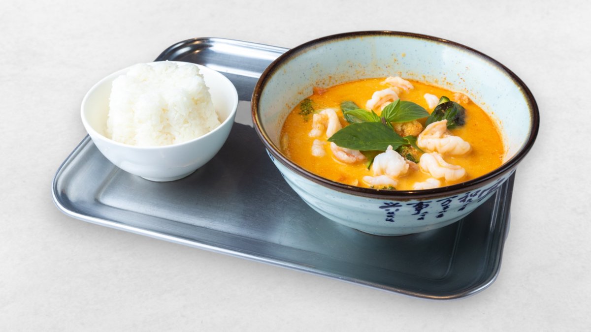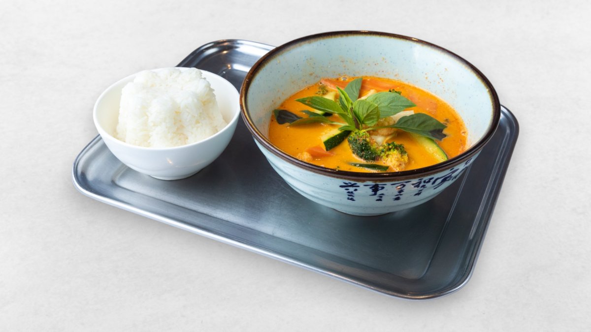 Reisschale, mildes japanisches Curry aus Kartoffeln, Karotten
