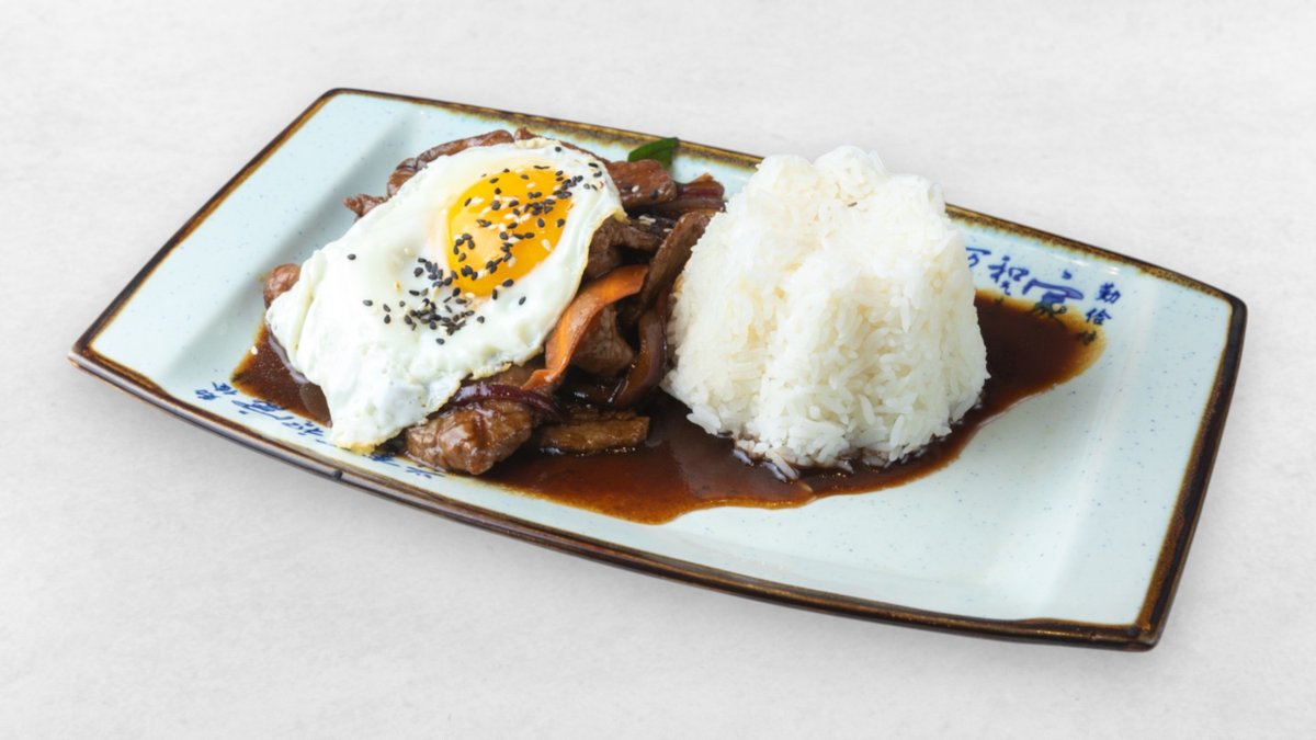 Koreanische Spezialität, mariniertes Beiried, Spiegelei