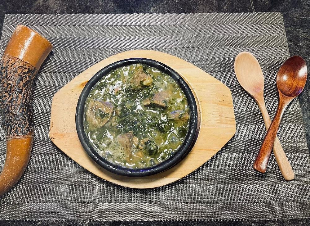 Düyülü və göyərtili acı bulyonunda mal əti tikələri