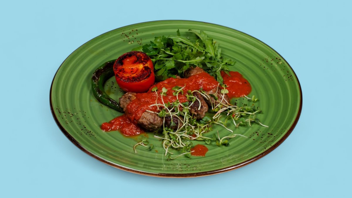 Can əti, çerri pomidoru, bolqar bibəri, soğan, kartof