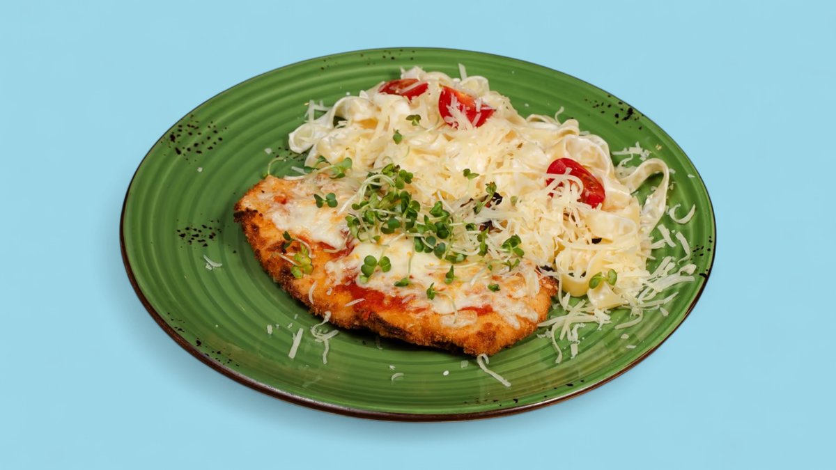 Toyuq filesi, göbələk, tomat sousu, mozzarella pendiri