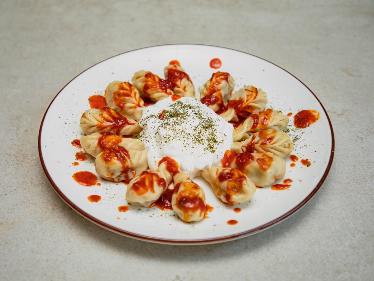 Açılmış xəmirdə mal əti farşı, pomidor sousu. Kərə yağı və qatıqda servis edilir