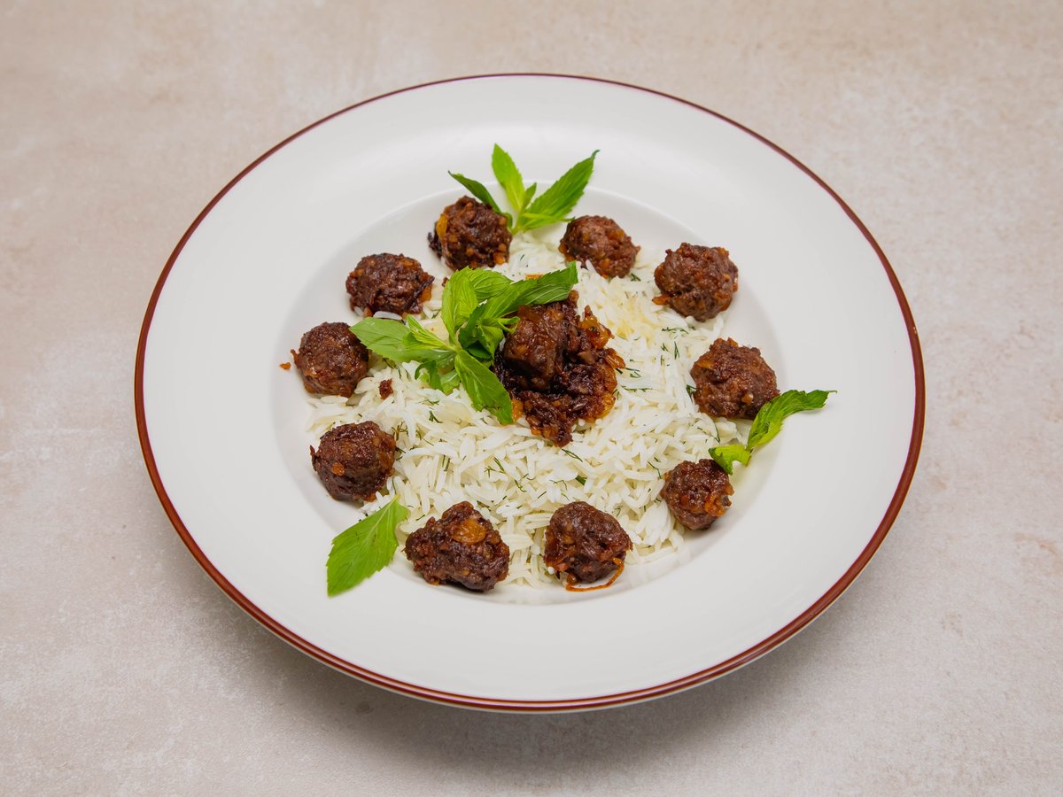 Can əti, zoğal turşu, vişnə, soya sous, düyü, göyərti, qırmızı soğan