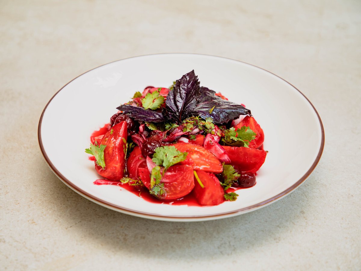 Pomidor, zoğal turşusu, albalı, qırmızı soğan, göyərti