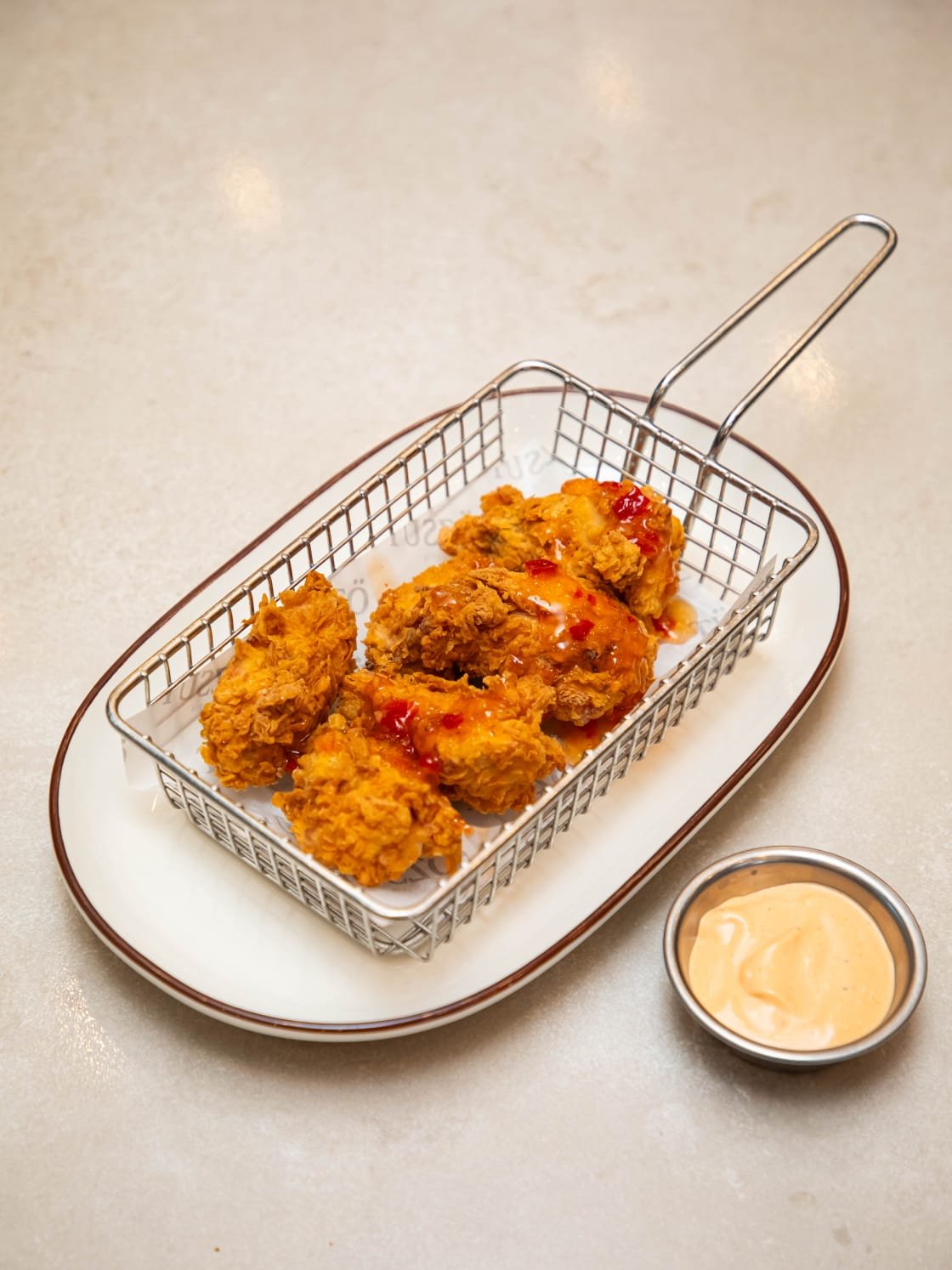 Xüsusi hazırlanmış toyuq əti, burger pendiri, duzlu xiyar, aysberq kahısı, kokteyl sousu, kartof fri və miks-kələm salatı