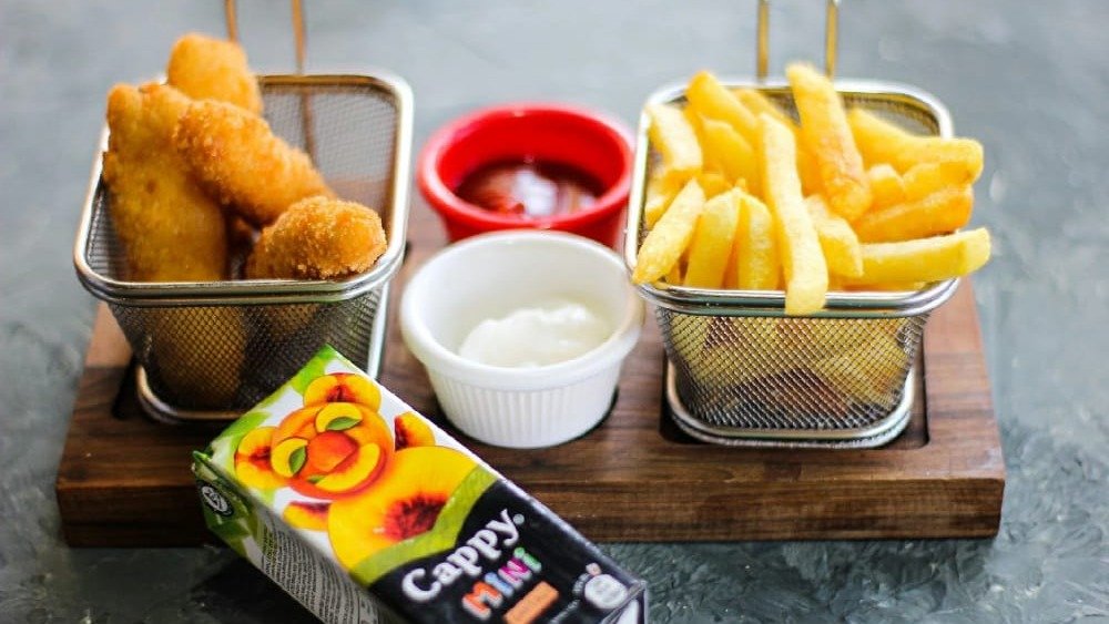 Kartof Fri + Naggetslər (4 əd.) + Ketçup + Mayonez + Çöplü Sok