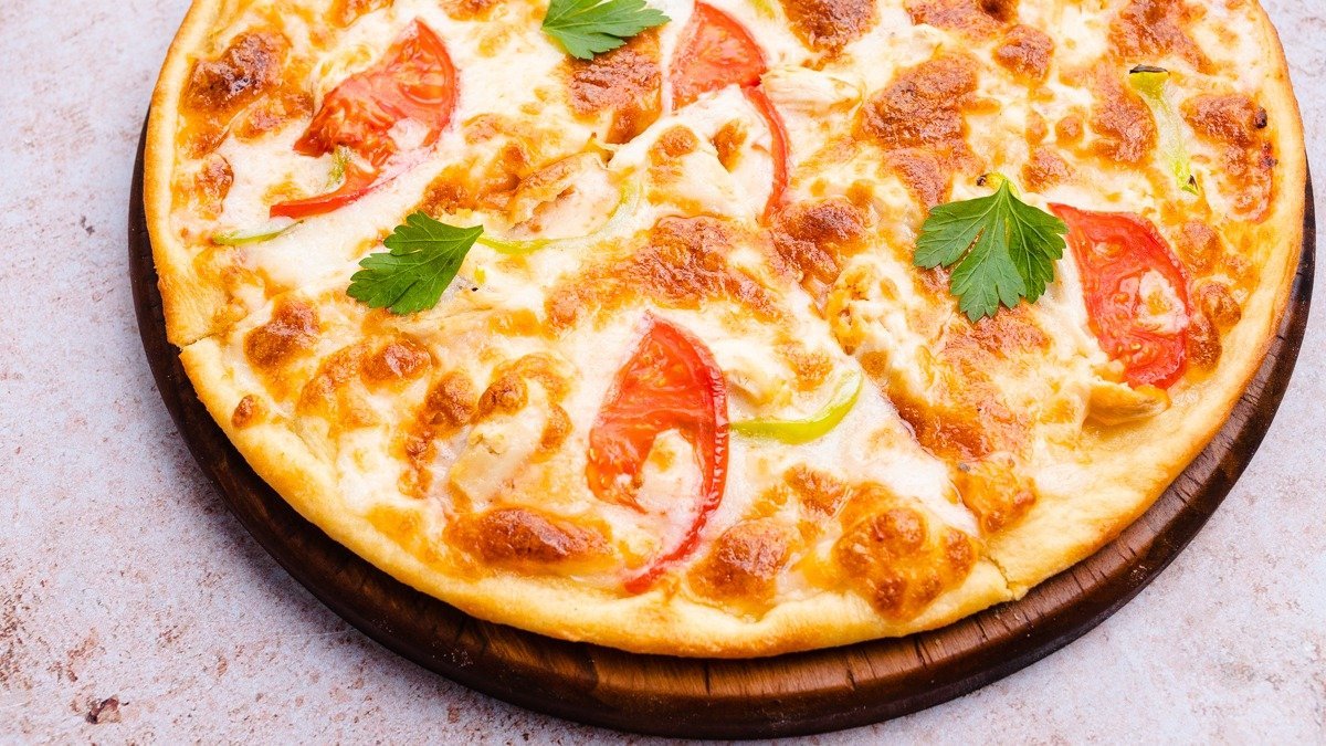 Toyuq əti, pomidor, xüsusi sous, zeytun, bibər, holland pendiri