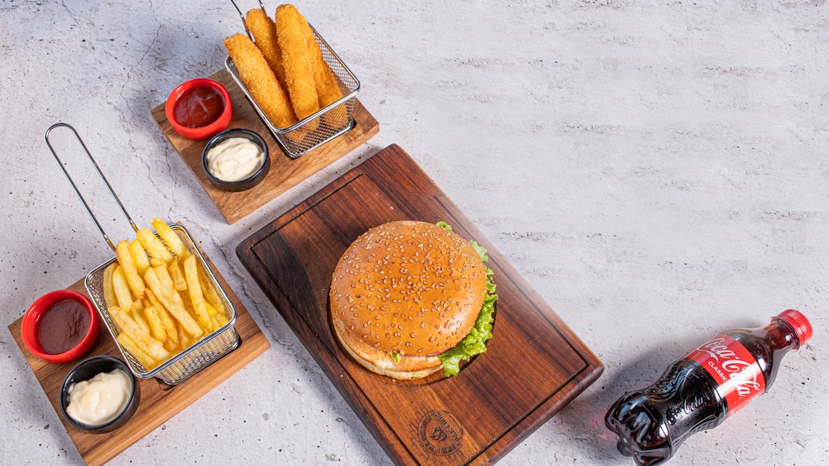 Nagets Burger, Fri, Toyuq Budları, Ketçup, Mayonez, Cola 0.5