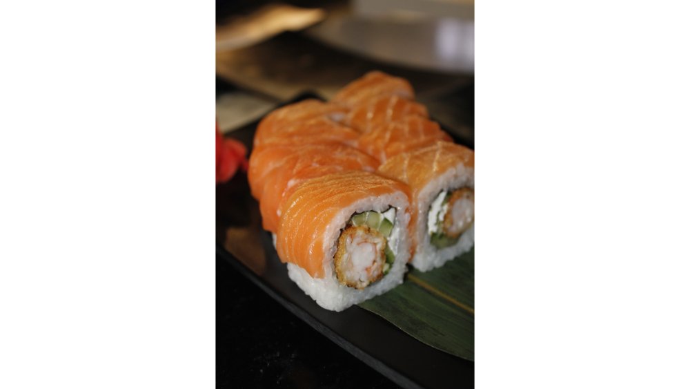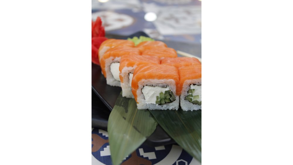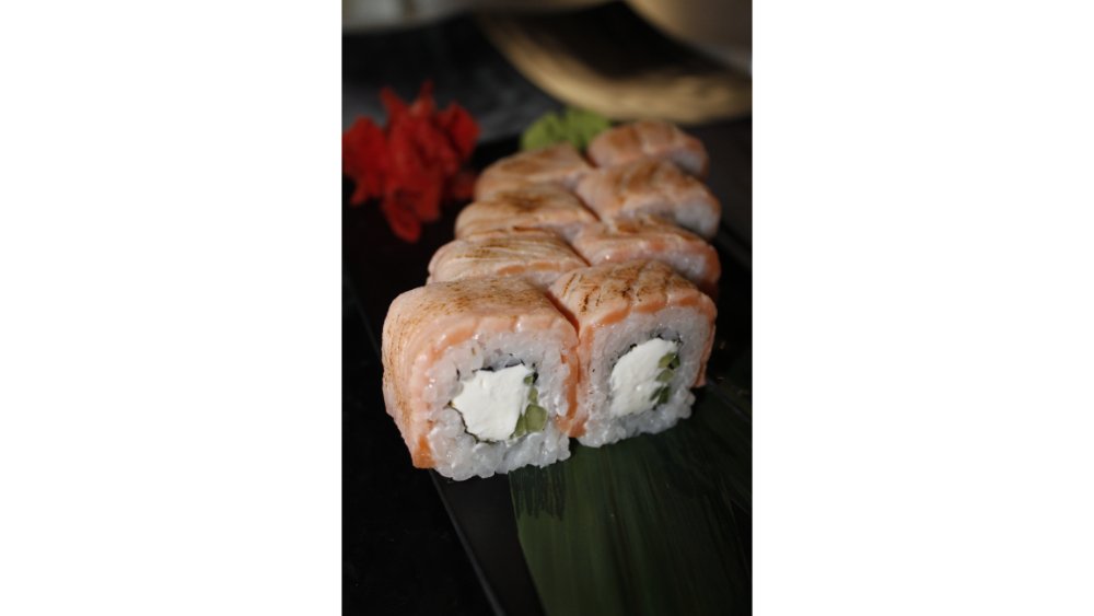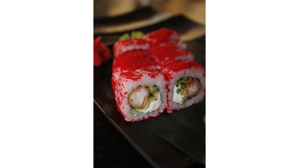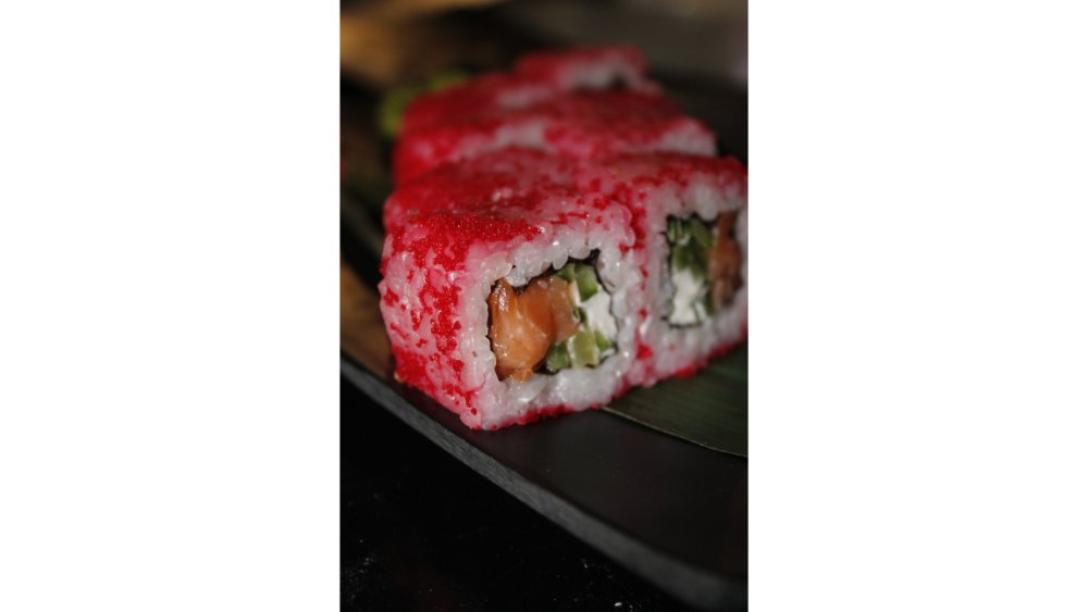 Suşi düyüsü, nori, krem pendiri, qızılbalıq, xiyar, tobiko