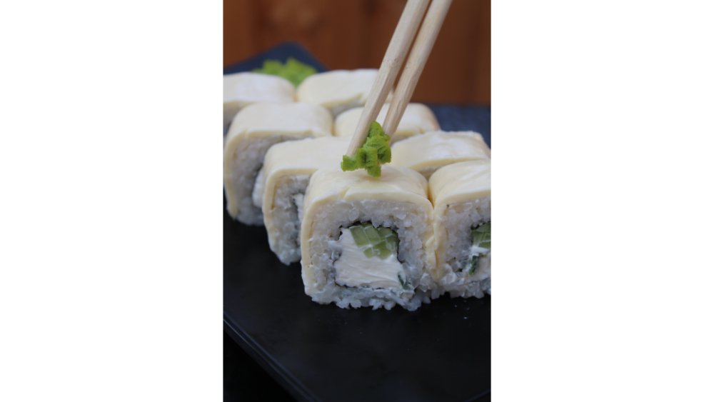 Suşi düyüsü, nori, krem pendiri, xiyar, pendir çedar pendiri