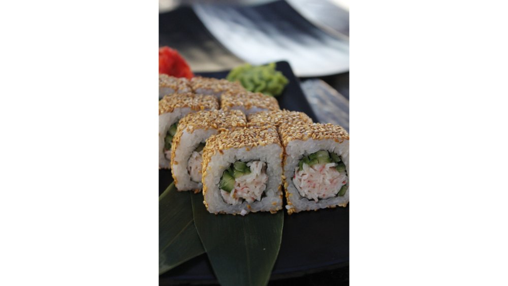 Suşi düyüsü, nori, krab, xiyar, küncüt