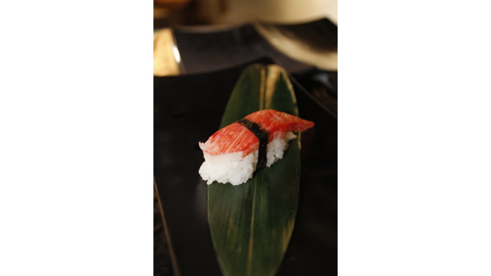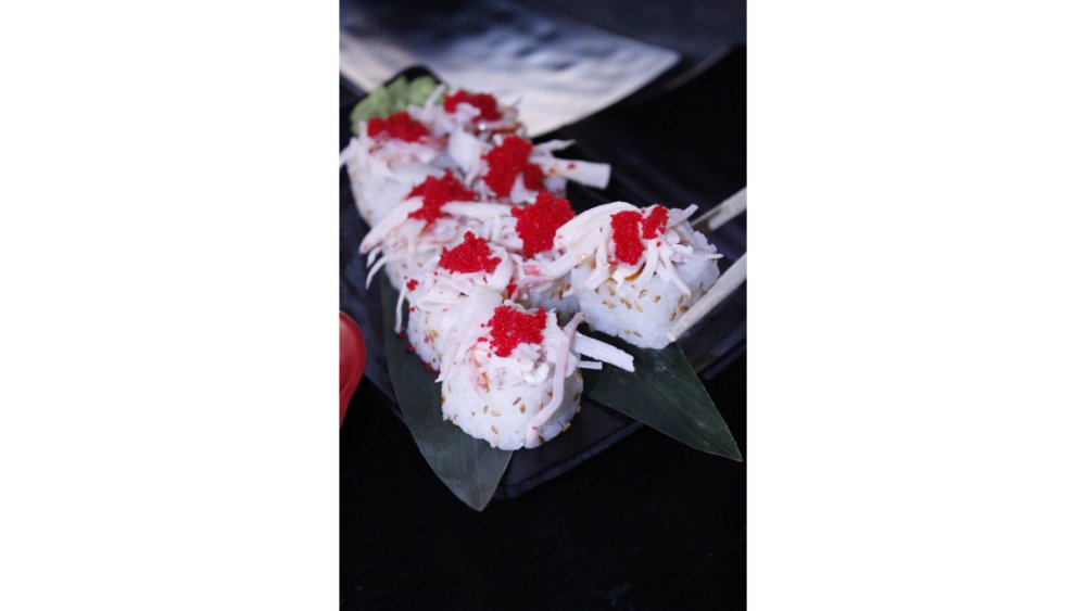 Suşi düyüsü, nori, krab, acı sousu, tobiko, küncüt