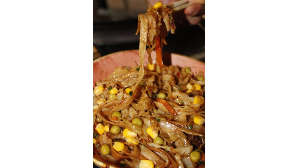 Udon, can əti, ağ kələm, qırmızı kələm, yaşıl bibər, kök, xiyar, oyster sousu, şirin çili sousu, teriyaki sousu, soya sousu, sriraça sousu