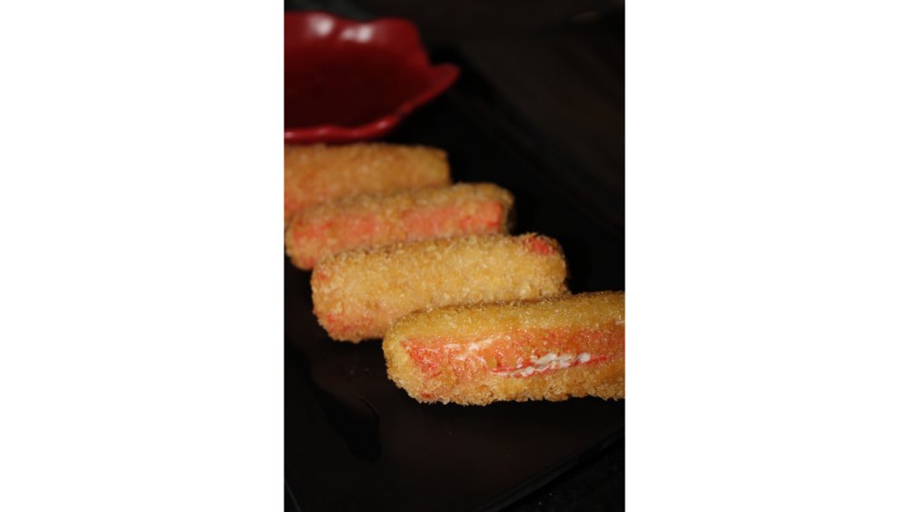 Krab çubuğları, tempura unu, şirin çili sousu