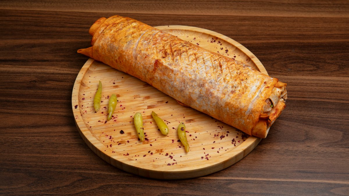 Toyuq dönər, tərəvəz, sous, iri lavaş