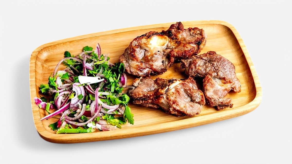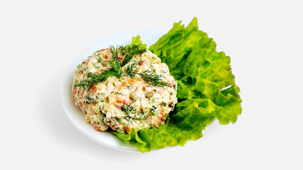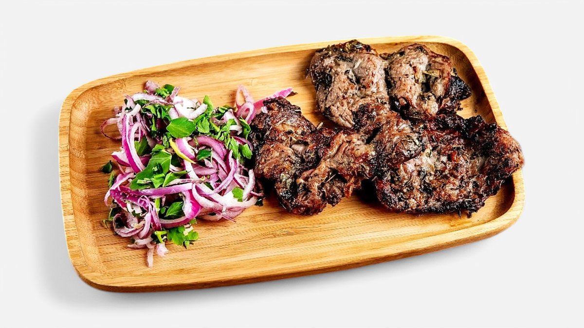 Dana əti, pomidor, xiyar, cəfəri, mayonez