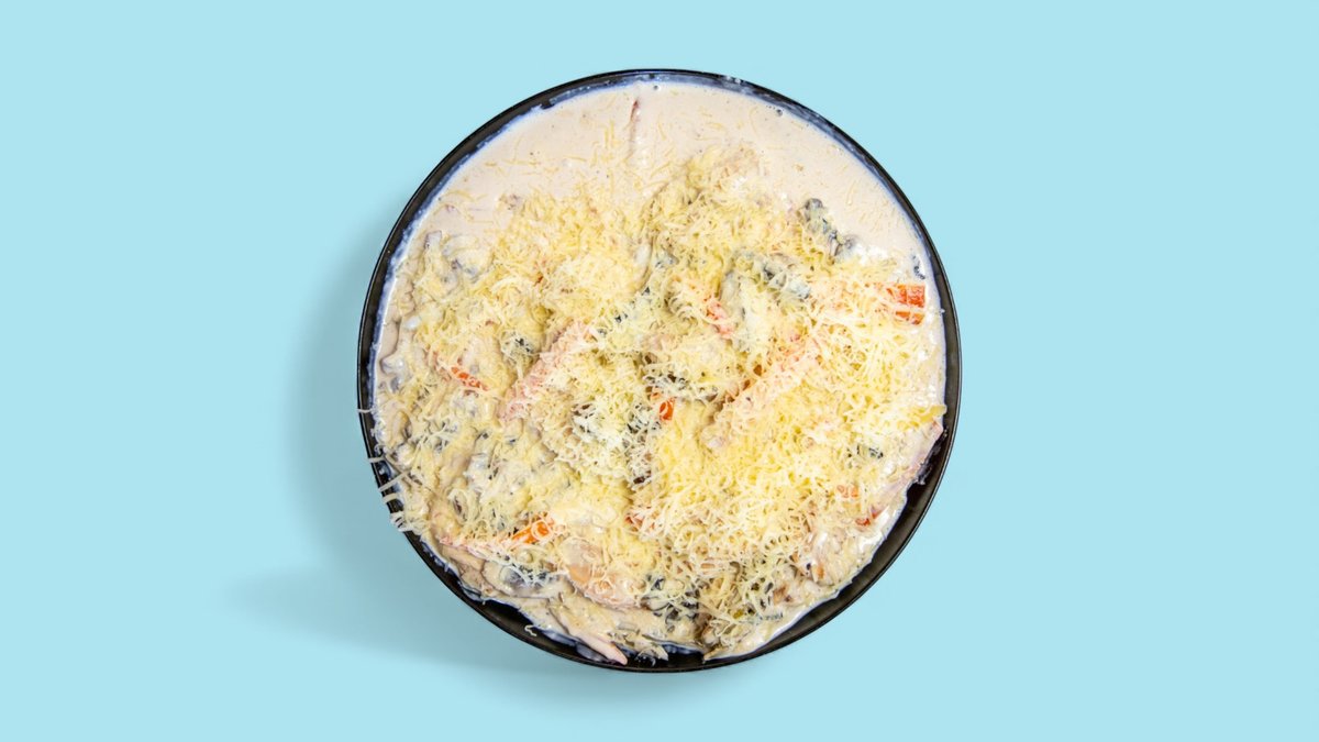 пилешко филе, гъби, кисели краставици, царевица, чушки, моркови, сос 500г