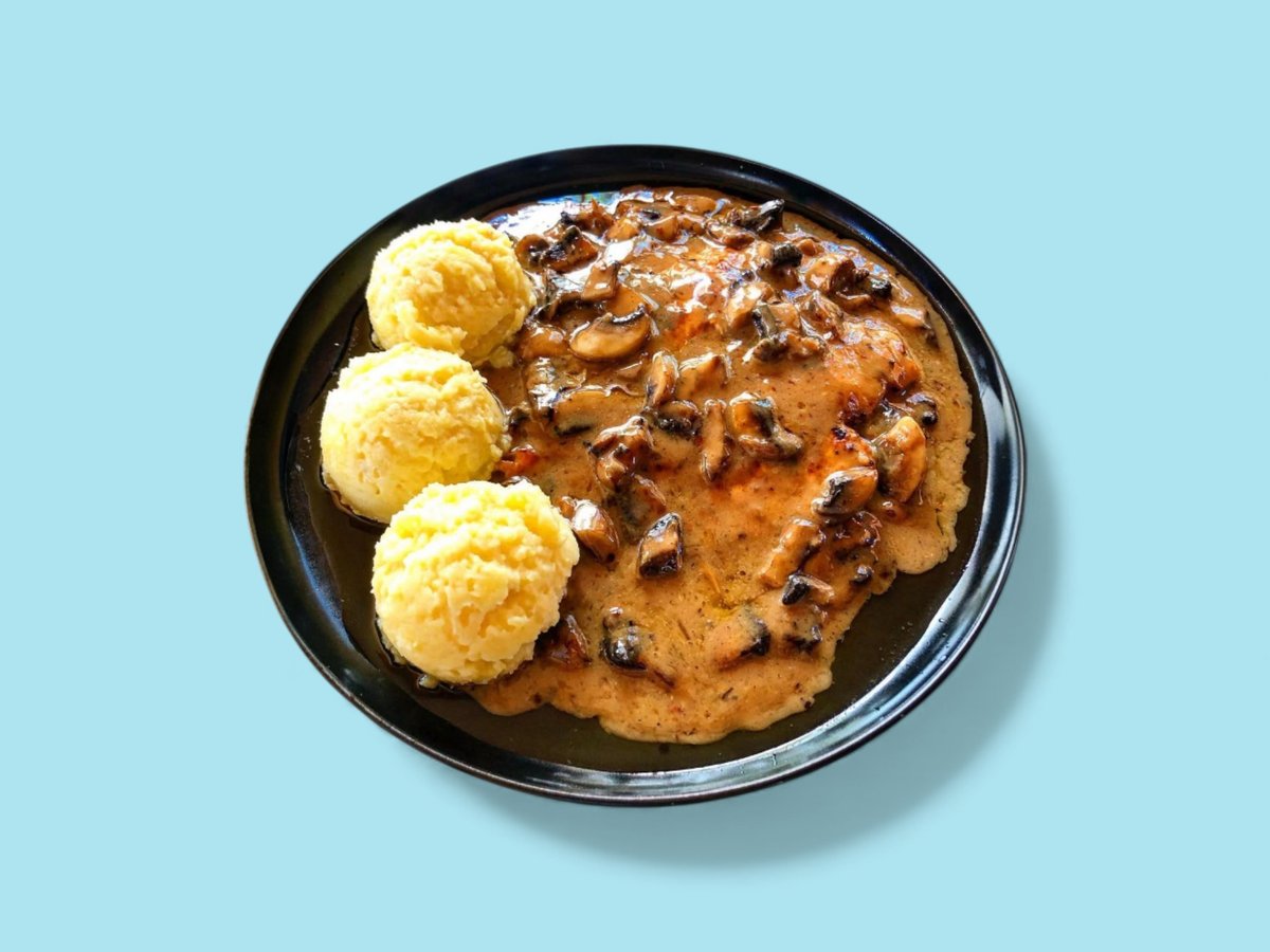 Пилешко филе с гъбен сос и картофено пюре