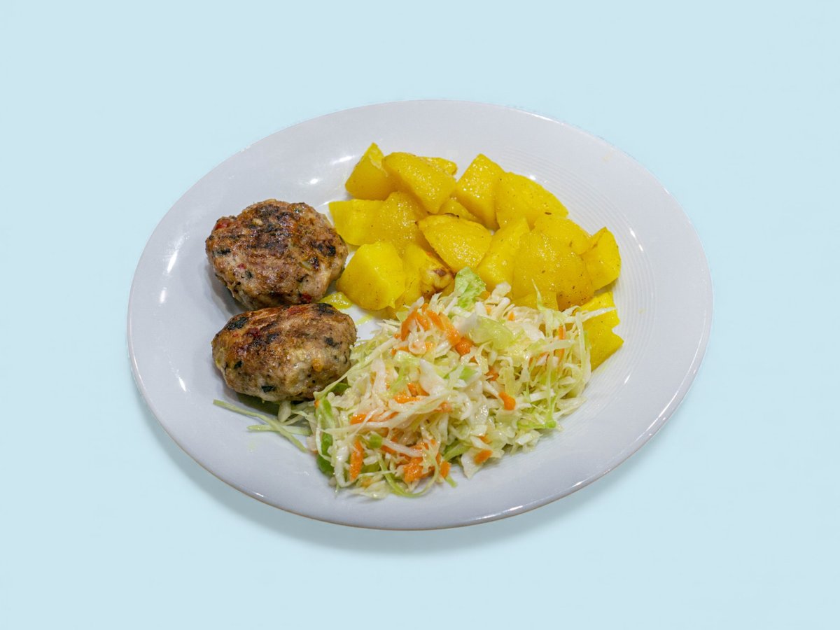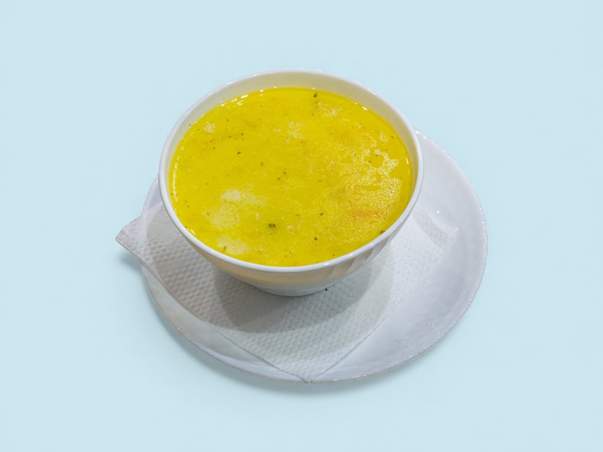 пилешко месо, фиде, моркови, лук, яйце, кис. мляко, подправки 350г
