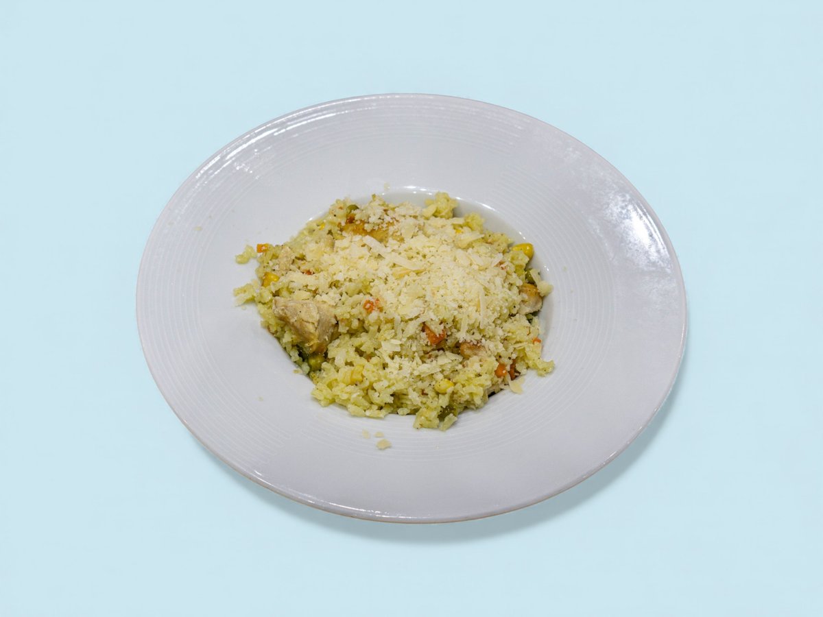 ориз, пил. филе, зеленчуци, гъби, пармезан 400г