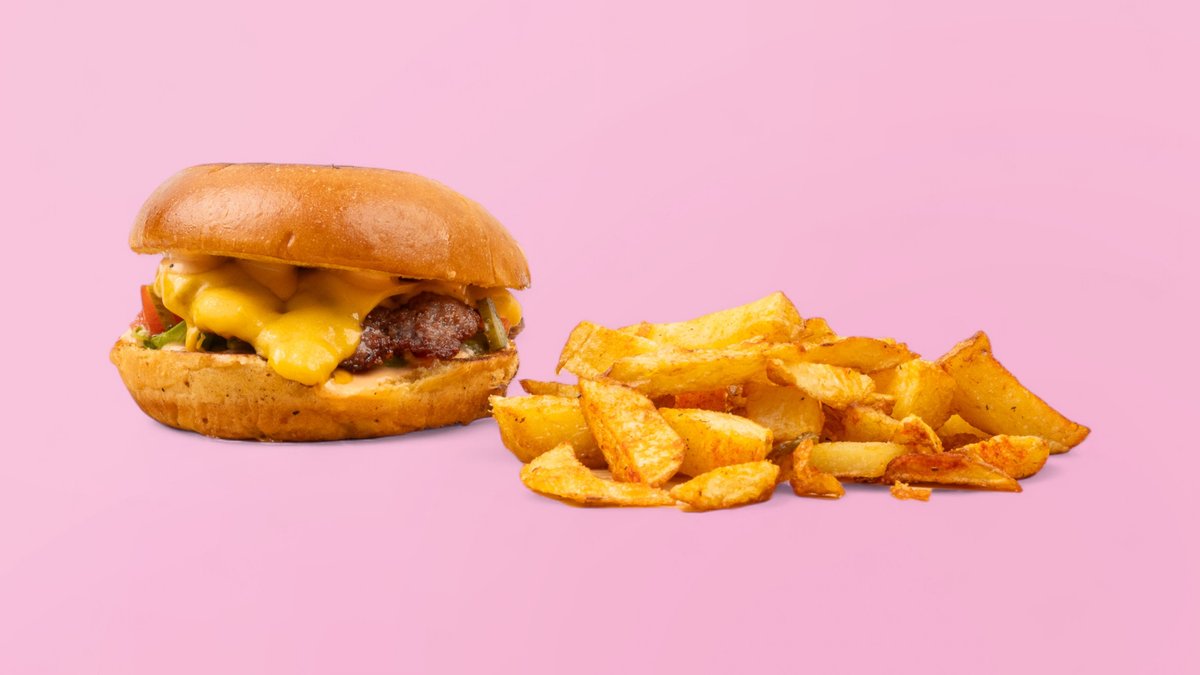 бургер питка, кайма смес, Чедър сирене, домат айсберг, кисела краставичка, бургер сос 400г