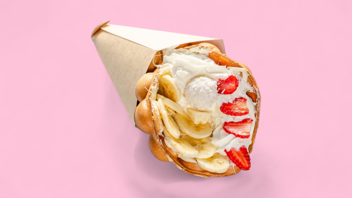 смес за гофрети, сметана, ягода, банан, Рафаело бонбон, топинг Нутела