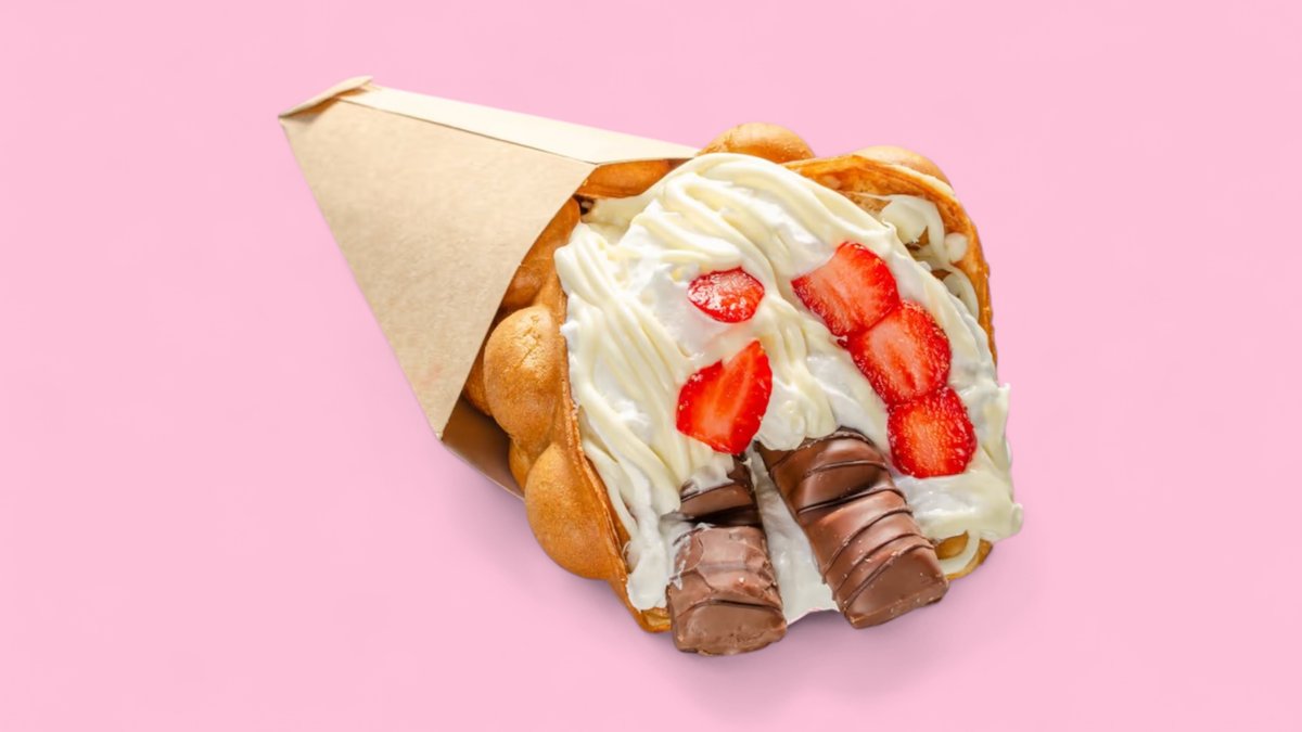 смес за гофрета, сметана, Киндер Буено, ягода, топинг бяла Нутела