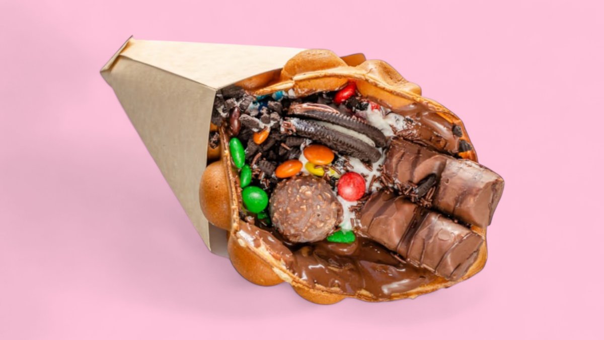 смес за гофрети, сметана, Фереро Роше, Орео натрошени бисквитки, М&М бонбонки, шоколадови пръчици поръска, топинг Нутела