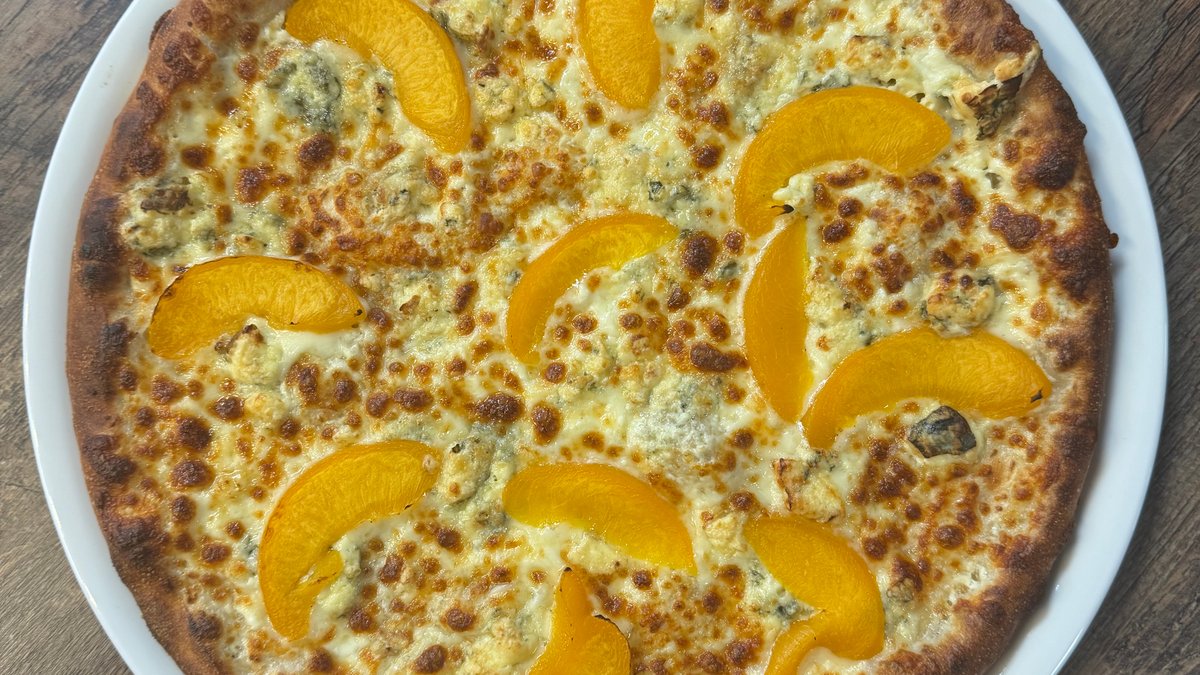 Сметанова основа, синьо сирене и праскови Cream base , blue cheese,peaches