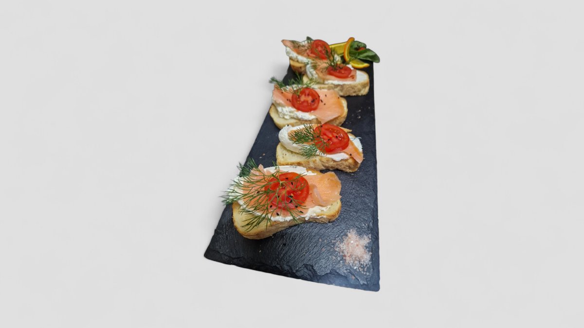 Брускети от крема сирене Филаделфия, сьомга, каперси и нигела