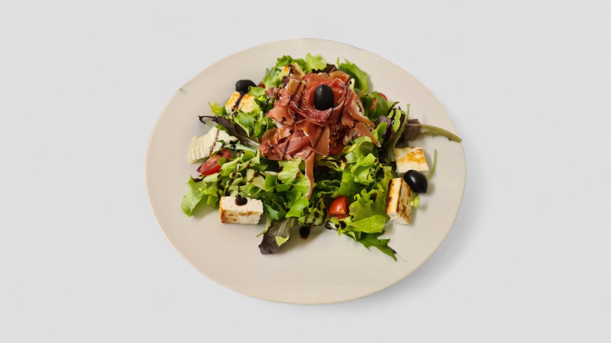 зелени салатки микс, орехи, сирене Рикота, прошуто, круша, нарова редукция 300гр