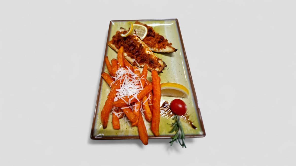 Пържен сладък картоф , поръсен с пармезан