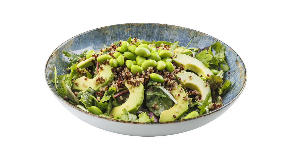 Микс от свежи салати с киноа, едамаме, авокадо и лимонов дресинг с кленов сироп - 250гр