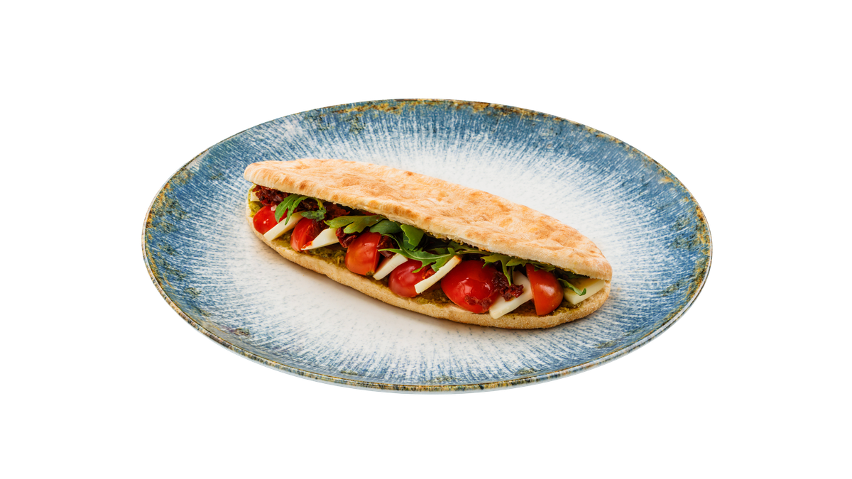 Панини сандвич с веган моцарела, домати, песто, сушени домати и свежа рукола - 220г