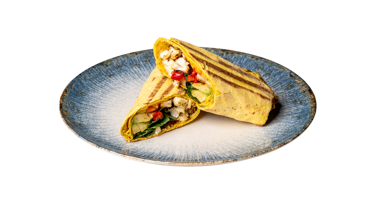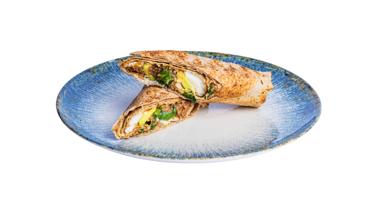Рап с печен карфиол, домашен хумус, бейби спанак и авокадо - 250г